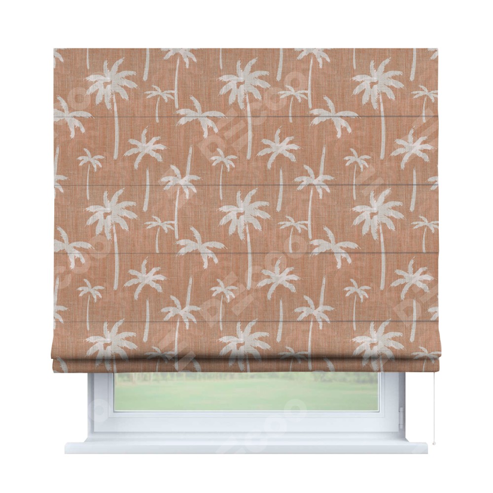 Римская штора «Кортин» для проема «Пальмы на закате» отлично подойдёт для интерьера: на балкон, в спальню и в кухню.