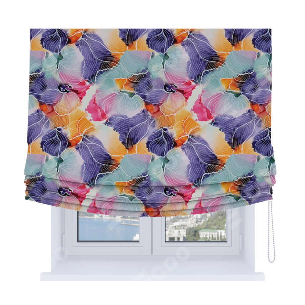 Римская штора Soft производителя «Cortin», используется для проёма, пошита из ткани блэкаут с нанесением сублимационной печати «Роскошные ирисы». Имеет универсальный механизм и подходит для монтажа: на потолок, на стену и в нишу. В отличие от стандартных римских штор, римская штора Soft не имеет горизонтальных вставок и нижнего отвеса. Это позволяет ткани произвольно драпироваться в свободные мягкие складки.
