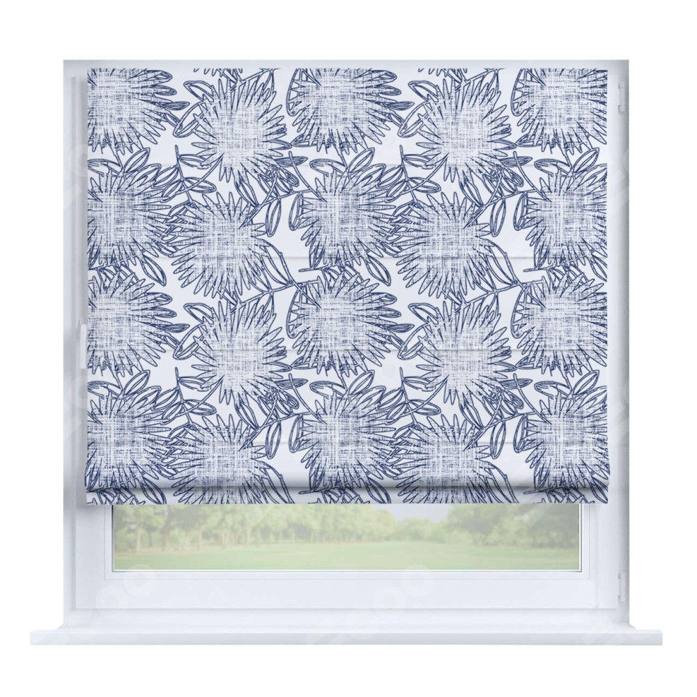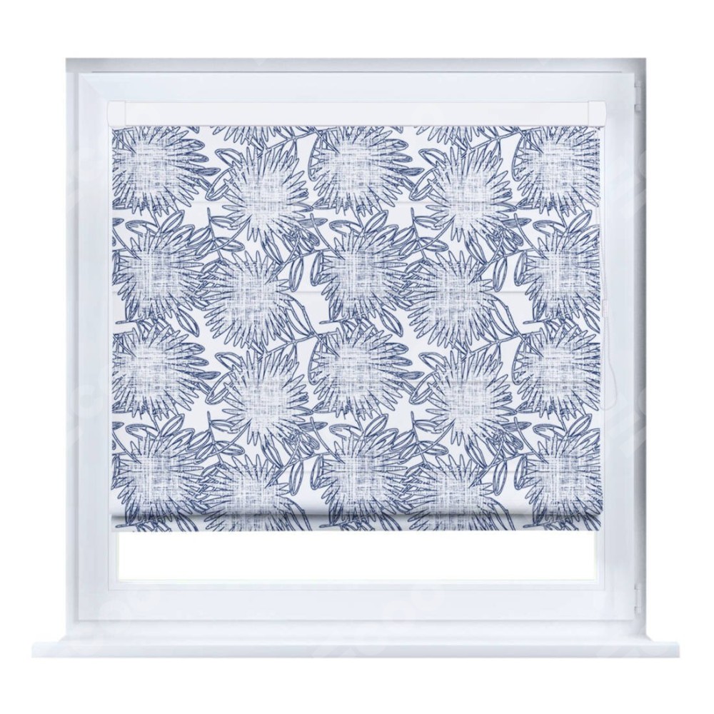 Римская штора производителя «Cortin», устанавливается на створку окна, пошита из ткани блэкаут с нанесением сублимационной печати «Синий букет». Штора шьётся по индивидуальным размерам, для данного типа римской шторы возможная ширина от 35 до 150 см., высота до 250 см.