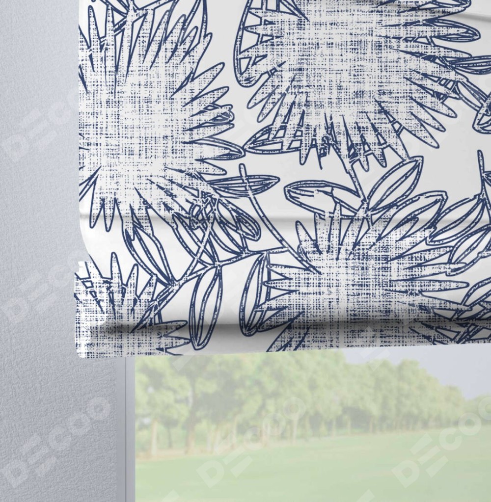 Римская штора на петлях «Синий букет» отлично подойдёт для интерьера: в гостиную, на балкон и в спальню.