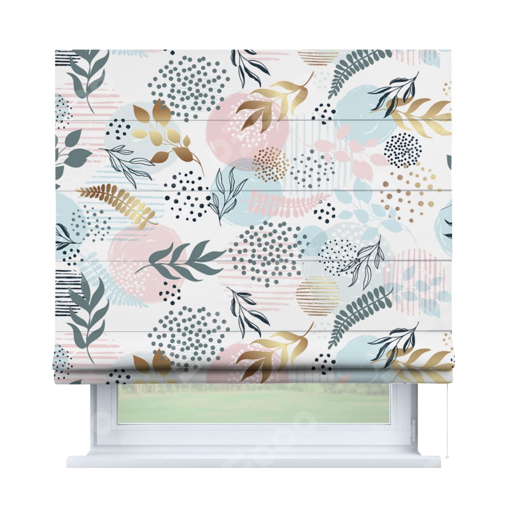 Римская штора «Кортин» для проема «Точки и листочки» предоставлена в следующих характеристиках: