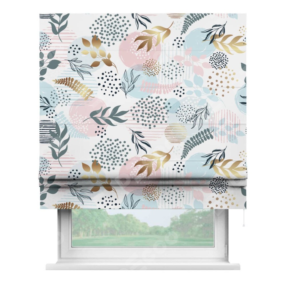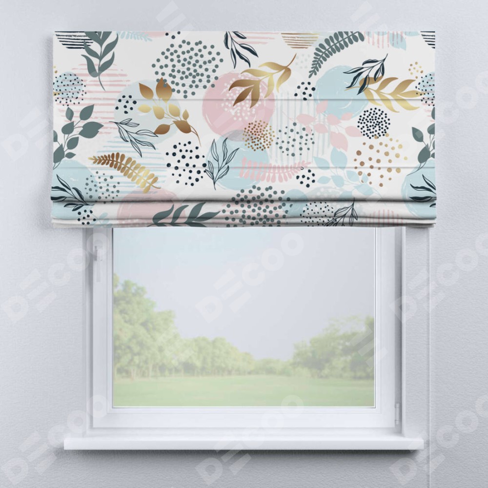 Римская штора «Кортин» для проема «Точки и листочки» отлично подойдёт для интерьера: в кухню, на балкон и в гостиную.