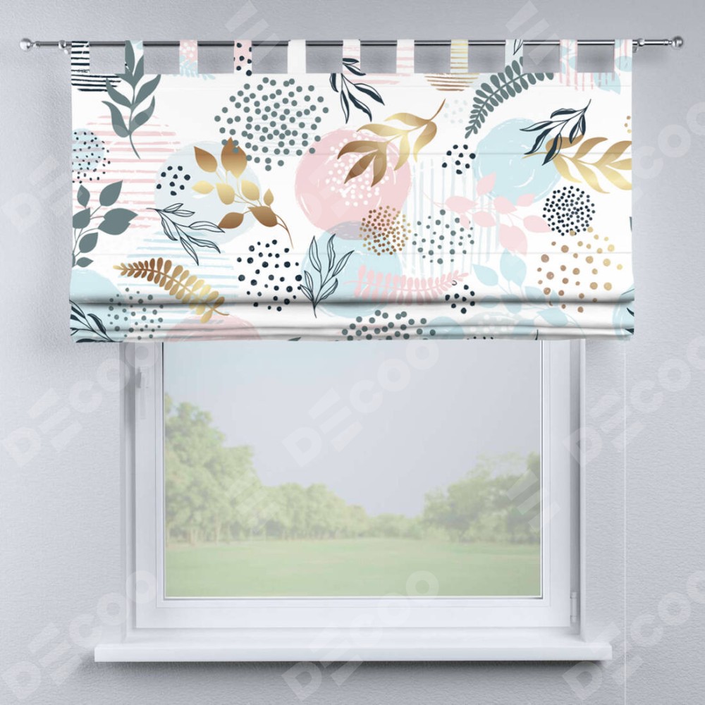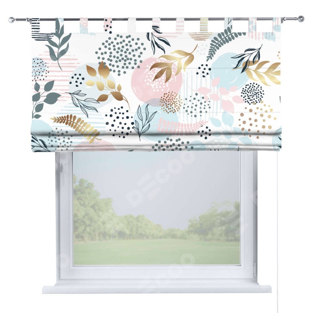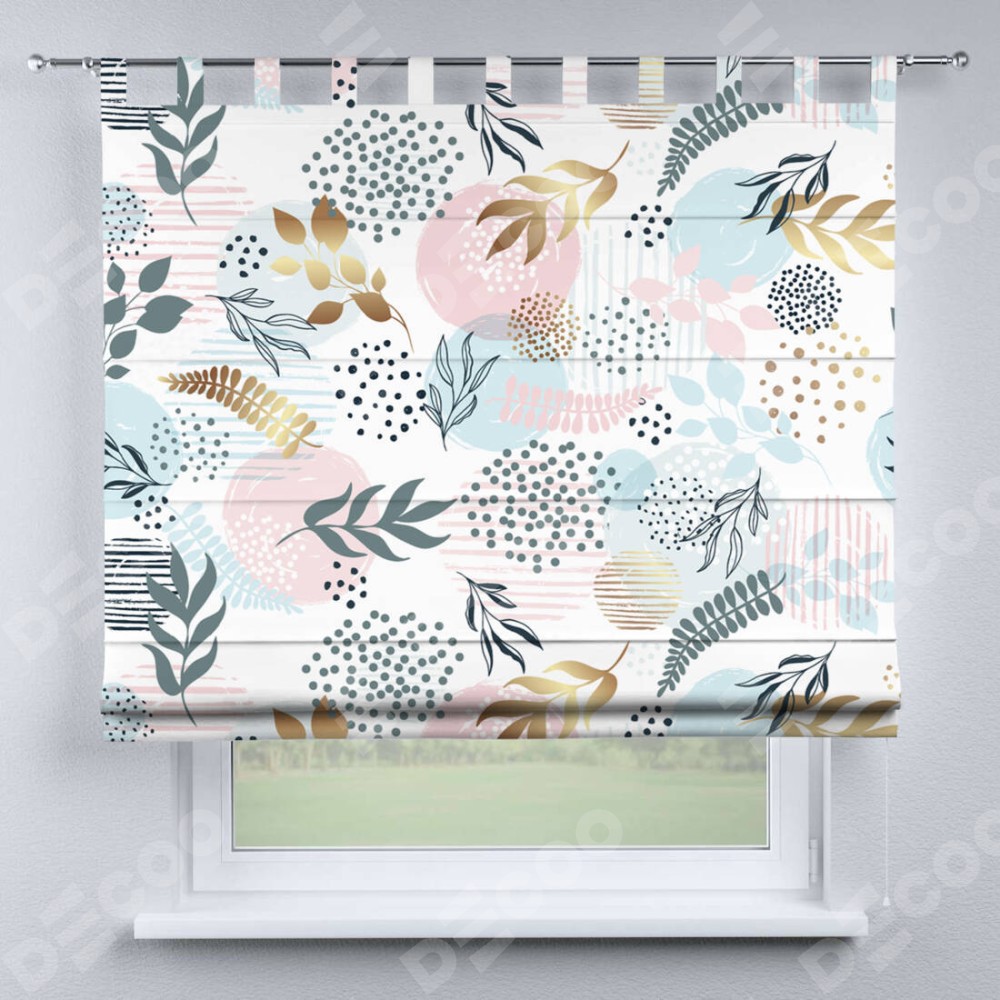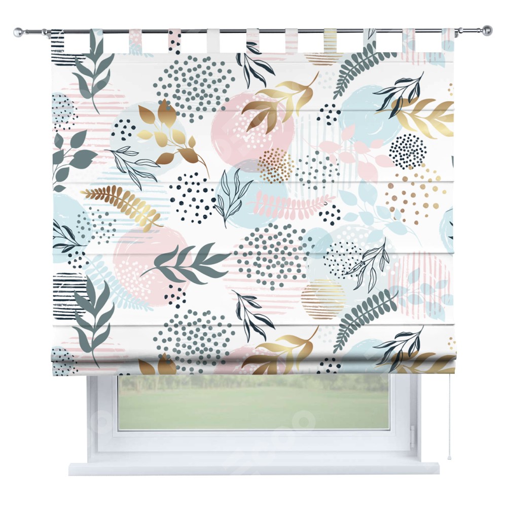 Римская штора на петлях «Точки и листочки»