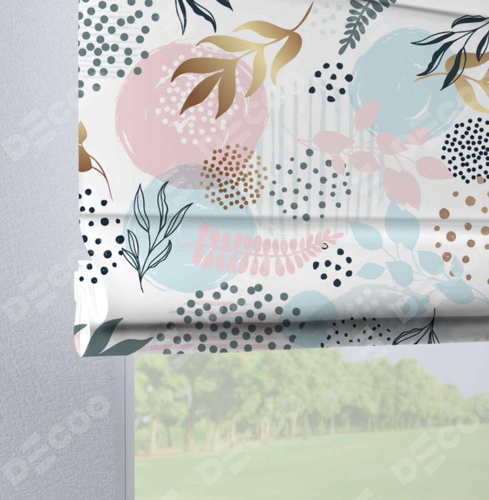 Римская штора на петлях «Точки и листочки» отлично подойдёт для интерьера: на балкон, в кухню и в спальню.