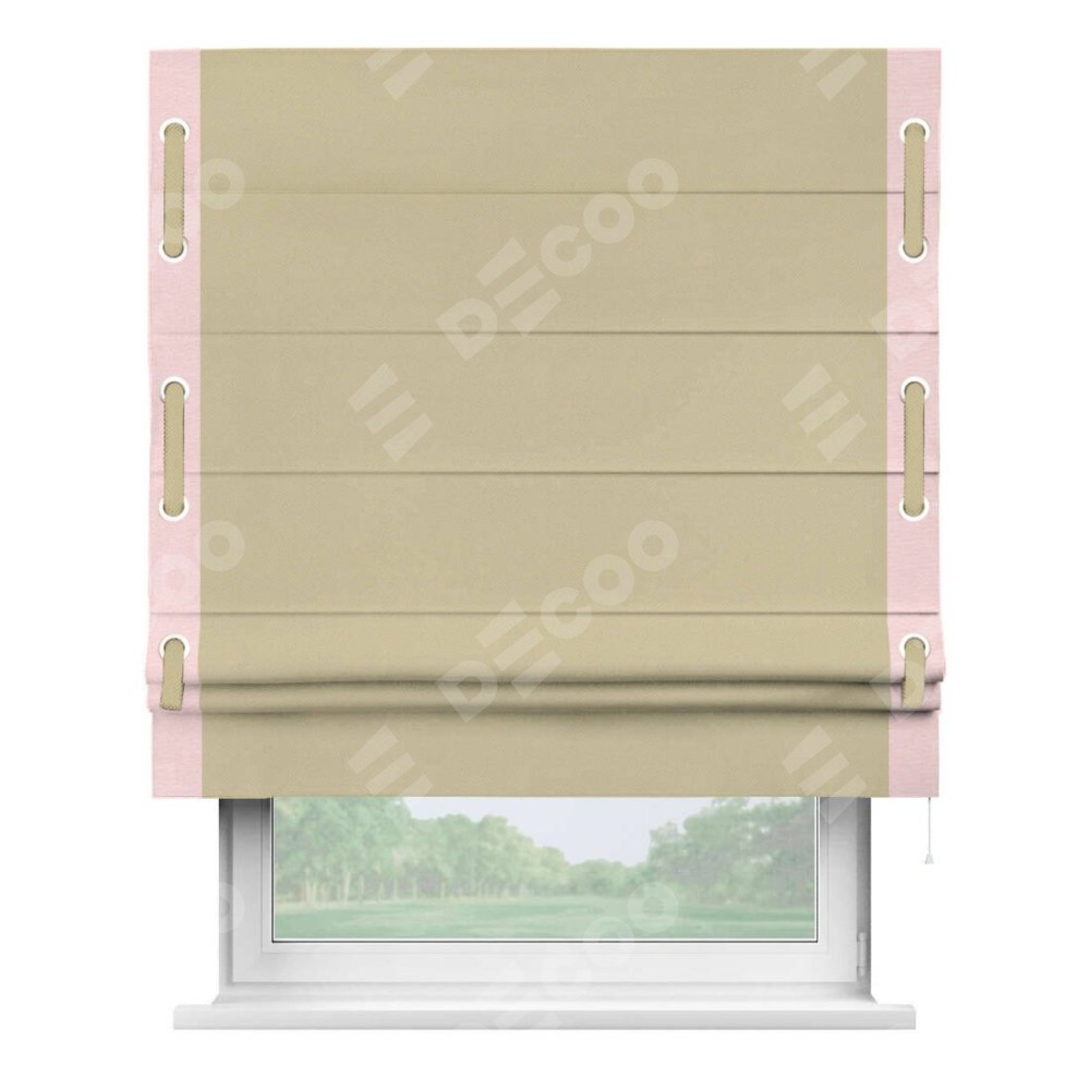 Римская штора «Кортин» с кантом Стрим Дуо (люверсы с пояском) отлично подойдёт для интерьера: в спальню, в гостиную и на балкон.