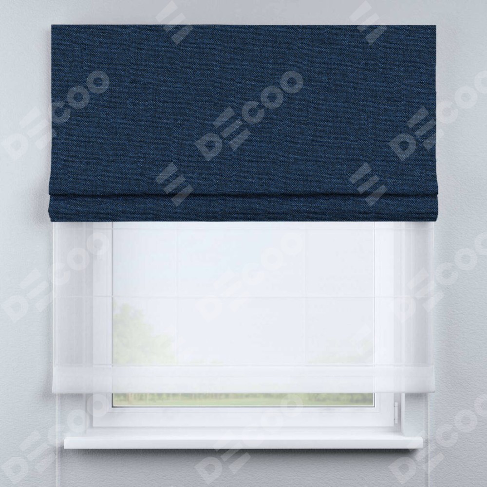 Римская штора «Кортин» день-ночь, ткань лён кашемир тёмно-синий
