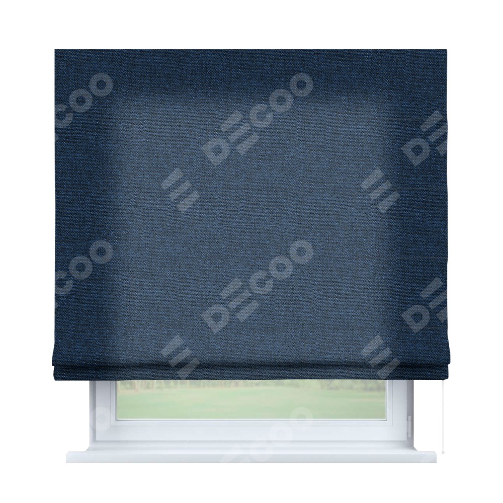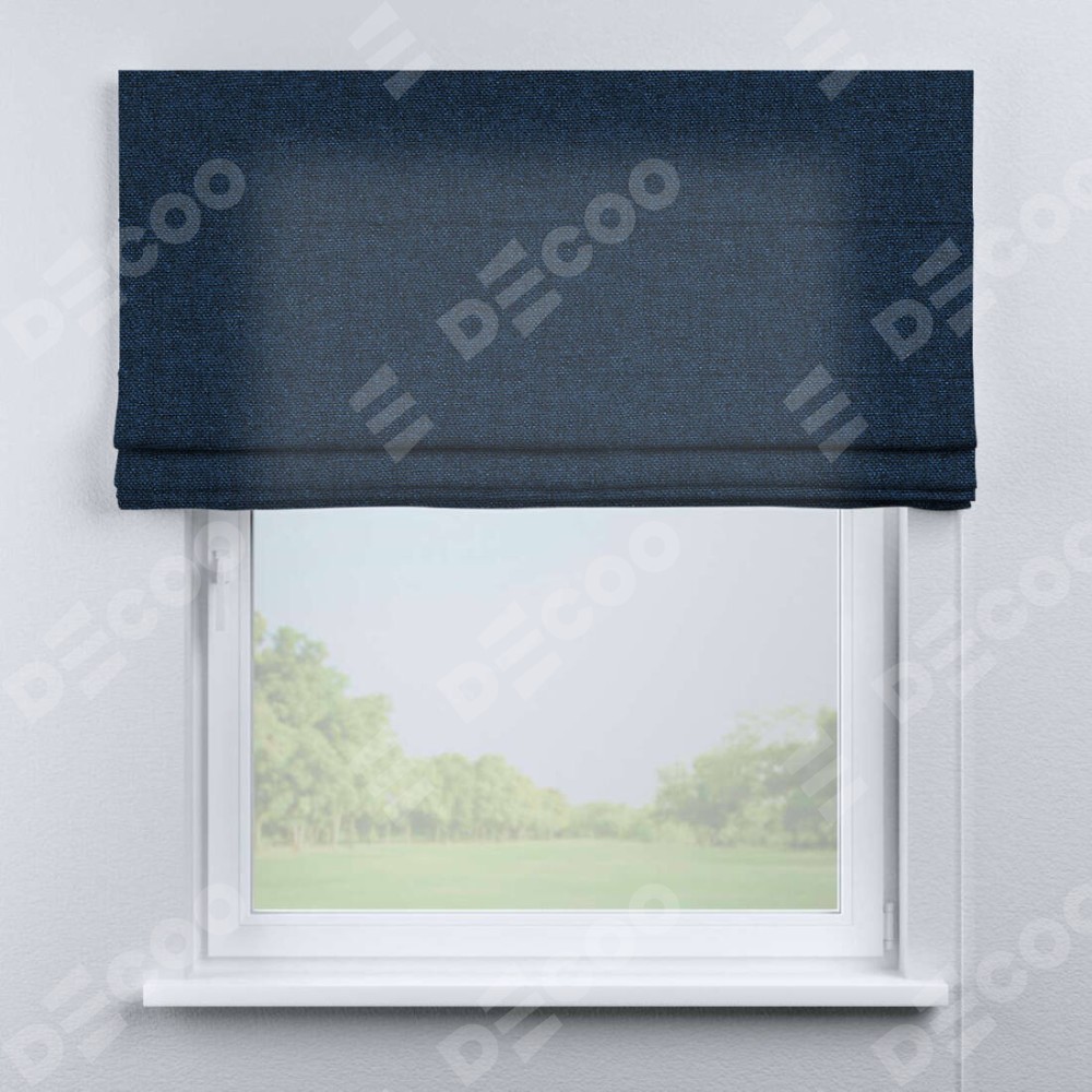 Римская штора «Кортин» для проема, ткань лён кашемир тёмно-синий
