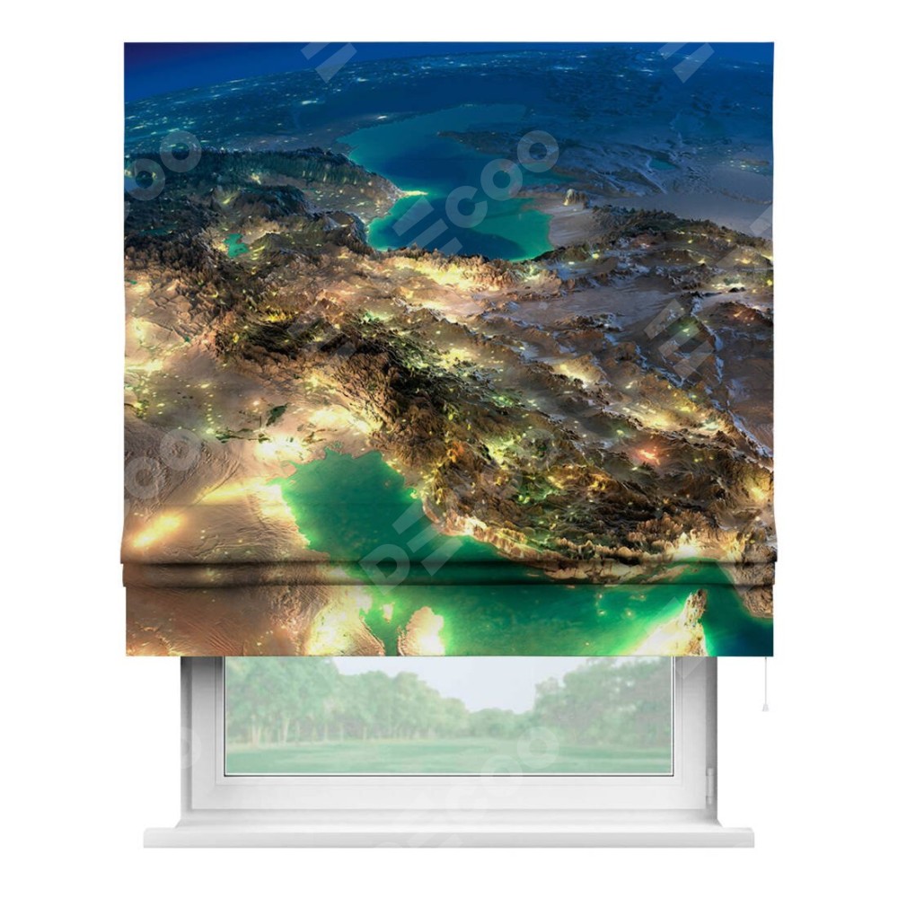 Римская штора «Кортин» для проема «Ночные огни» отлично подойдёт для интерьера: в гостиную, на балкон и в кухню.