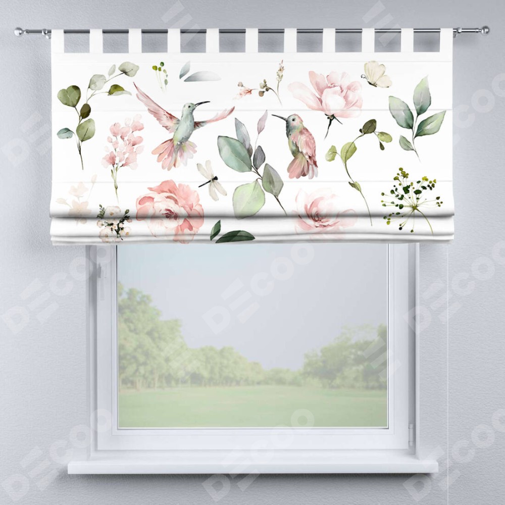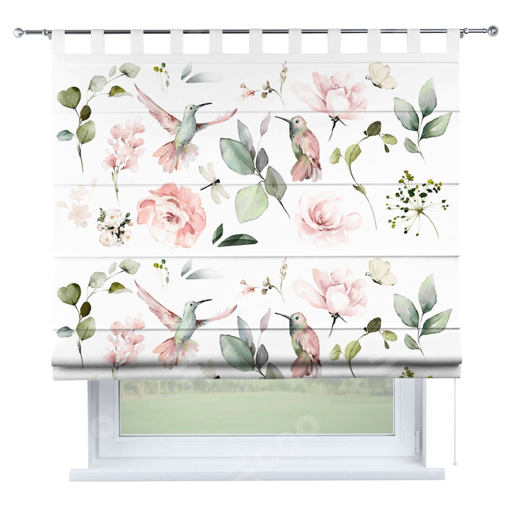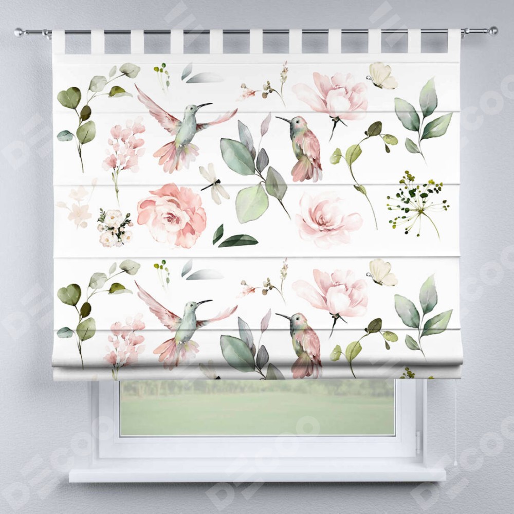 Римская штора на петлях «Уютный сад» предоставлена в следующих характеристиках: