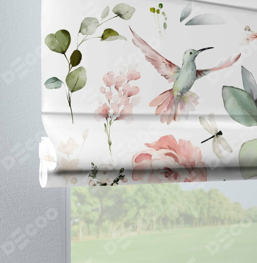 Римская штора на петлях «Уютный сад» отлично подойдёт для интерьера: в кухню, на балкон и в спальню.