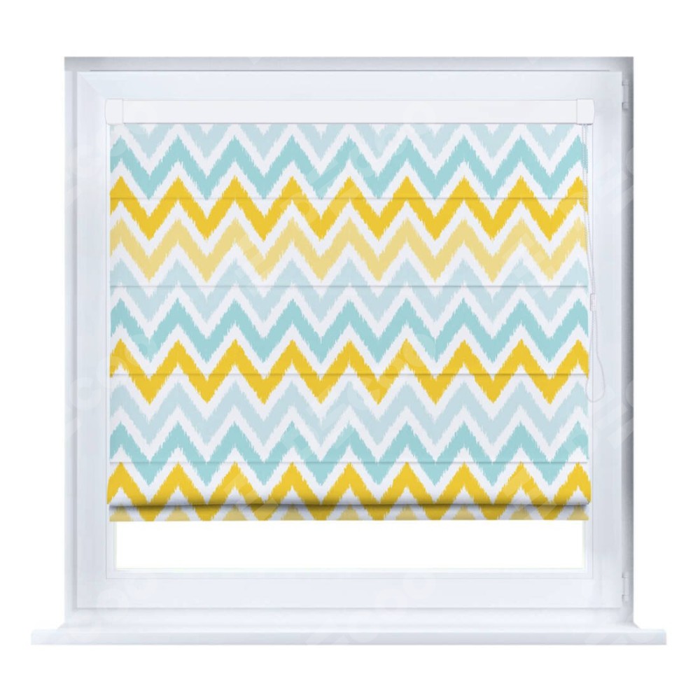 Римская штора «Кортин» на створку «Икат шеврон» отлично подойдёт для интерьера: в детскую, в гостиную и в кухню.