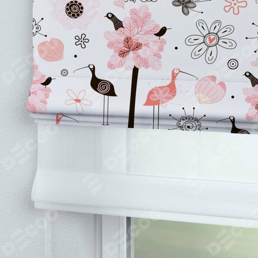 Римская штора «Кортин» день-ночь «Любопытные птички»