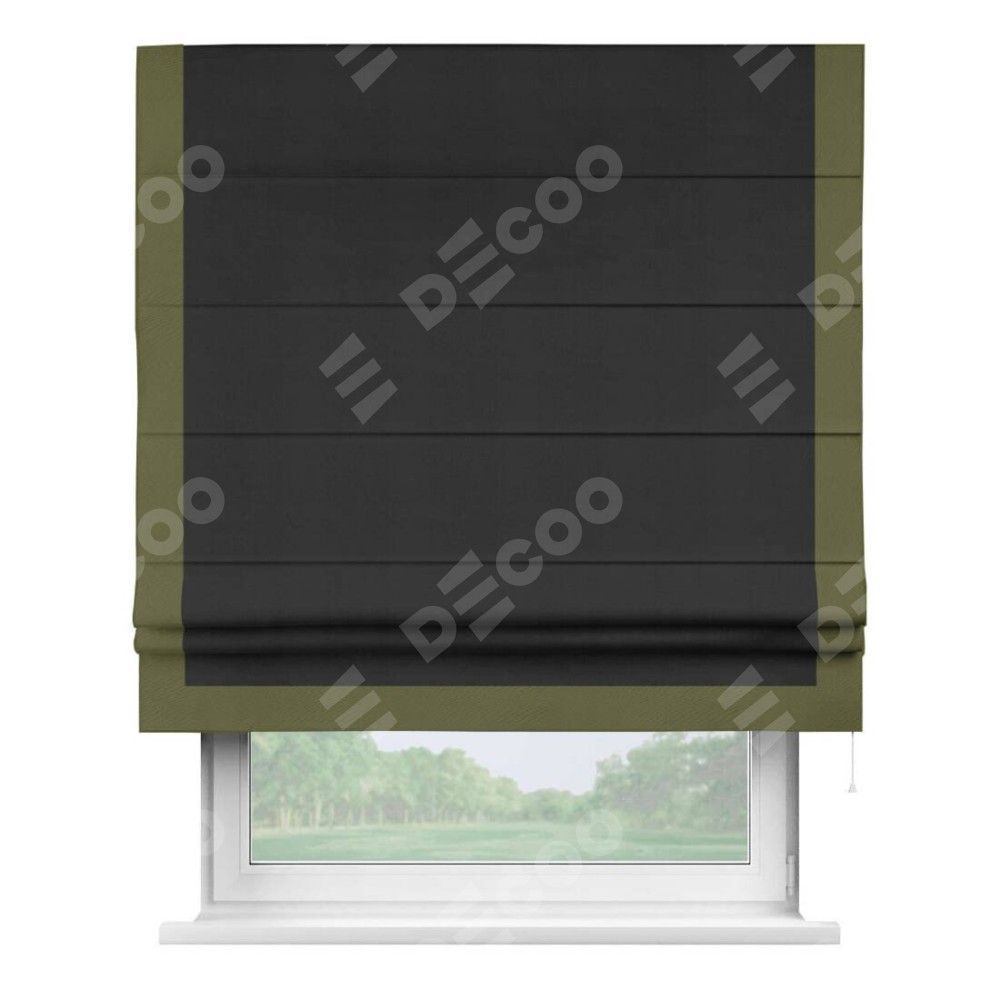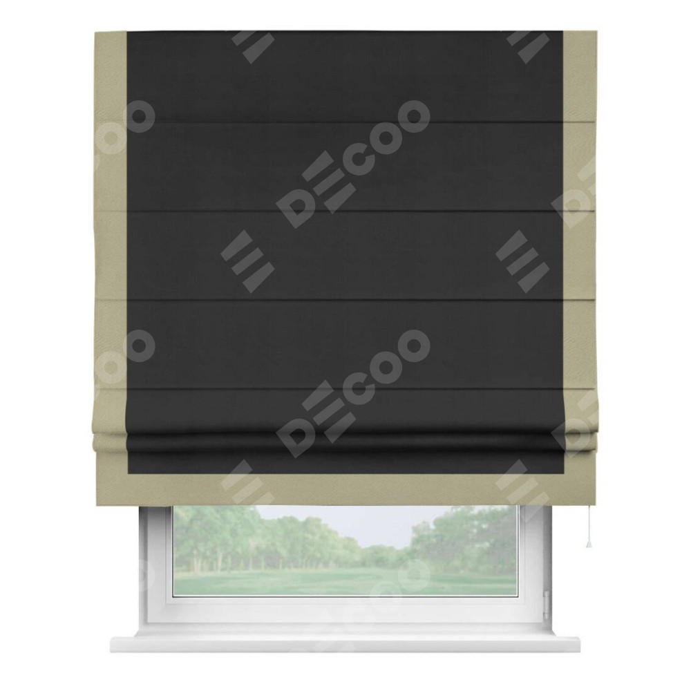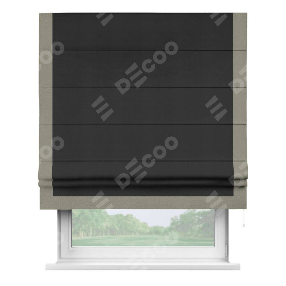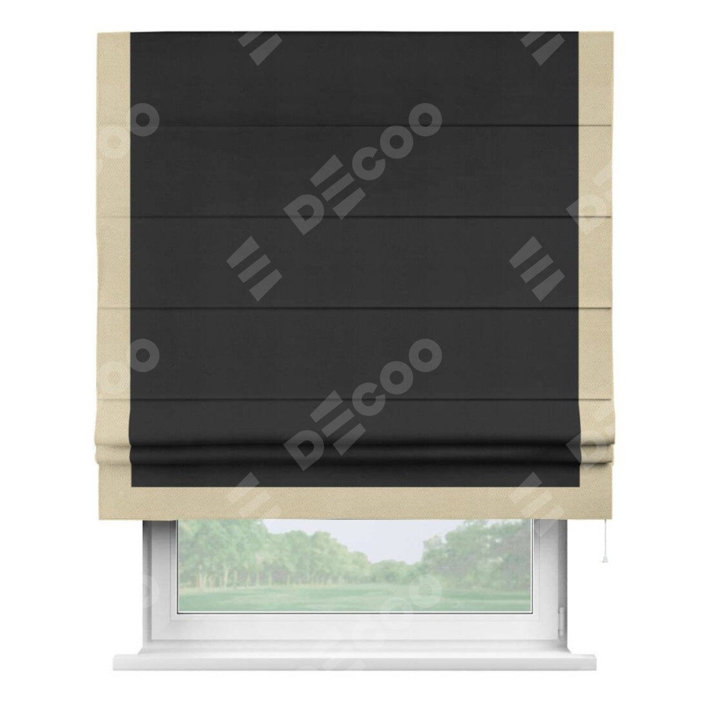 Римская штора «Кортин» с кантом Виктория, для проема, ткань блэкаут однотонный черный