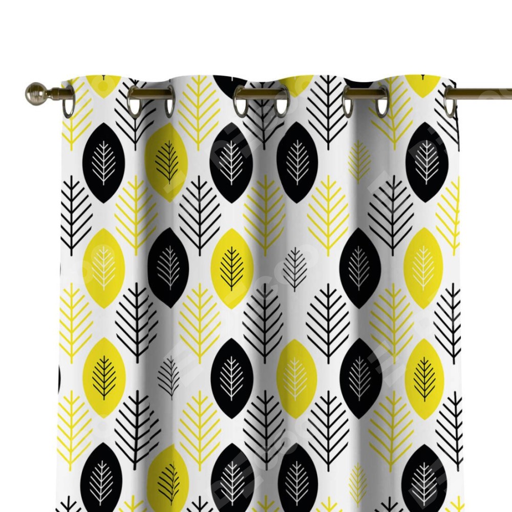 Комплект штор на люверсах «Черно-желтый модерн» отлично подойдёт для интерьера загородный дом, спальня и столовая.