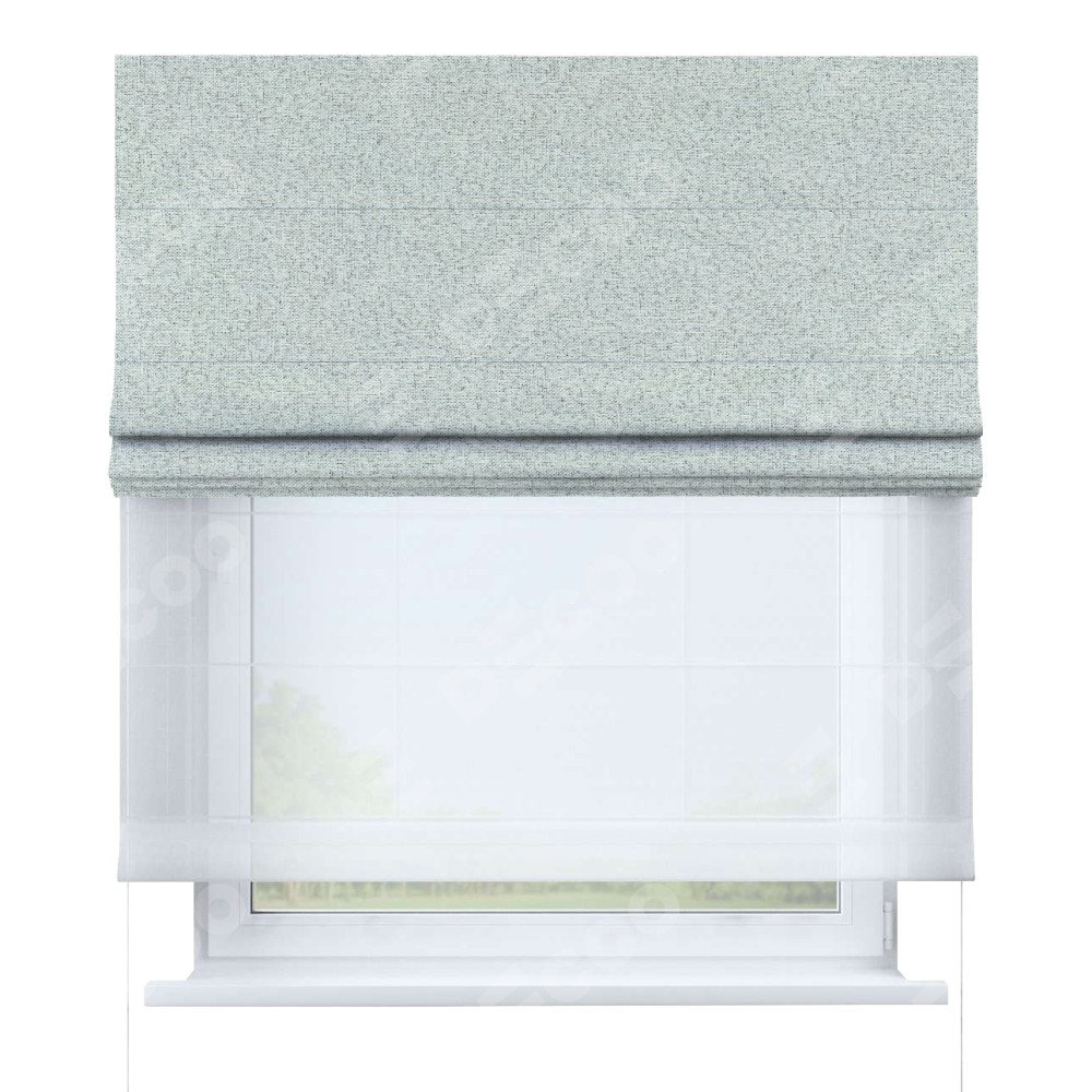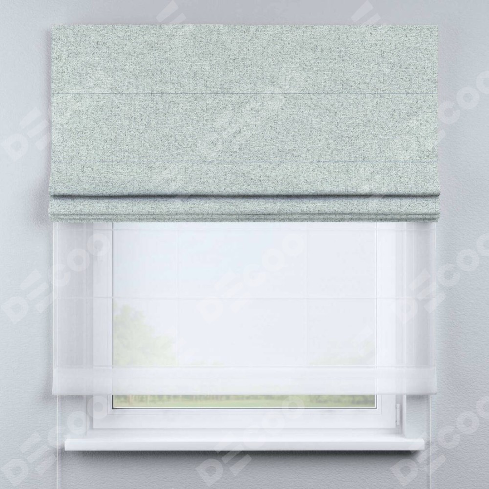 Есть модель римских штор в которой первый слой из плотной ткани, защищающий от яркого солнечного света, а втрой слой из тюля. Тюль в такой модели штор дает легкость и прозрачность помещению. А также защищает от посторонних взглядов и рассеивает не яркий свет.
