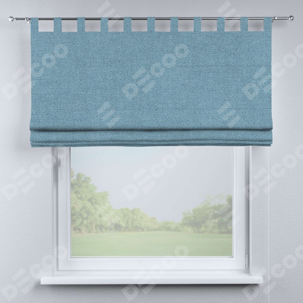 Римская штора производителя «Cortin», используется для проёма, пошита из ткани лён блэкаут голубой, артикул ткани 69574. Данная модель пошита на петлях, комплектуется на выбор круглым карнизом и подходит для монтажа на стену. Римская штора на петлях имеет простую систему регулировки высоты, отличительным преимуществом данной модели является простой способ монтажа. Достаточно повесить ее на трубу и штора готова!