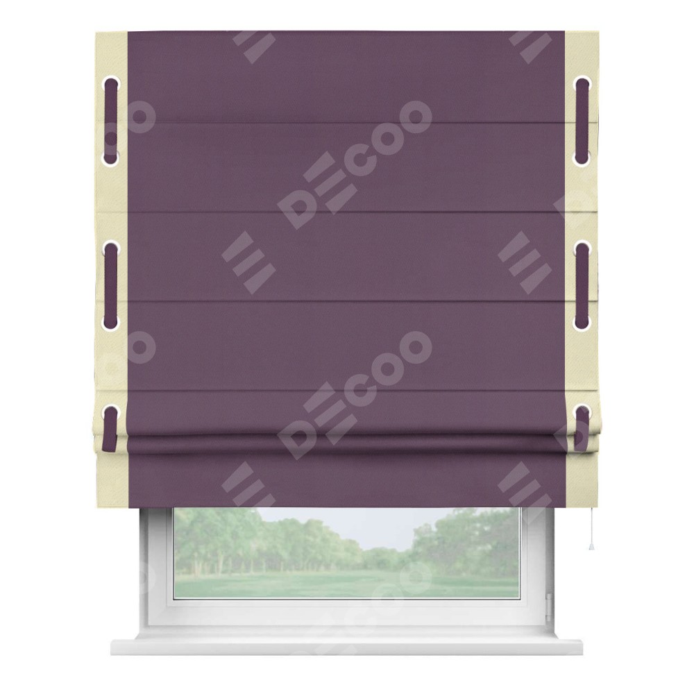 Римская штора «Кортин» с кантом Стрим Дуо (люверсы с пояском) предоставлена в следующих характеристиках: