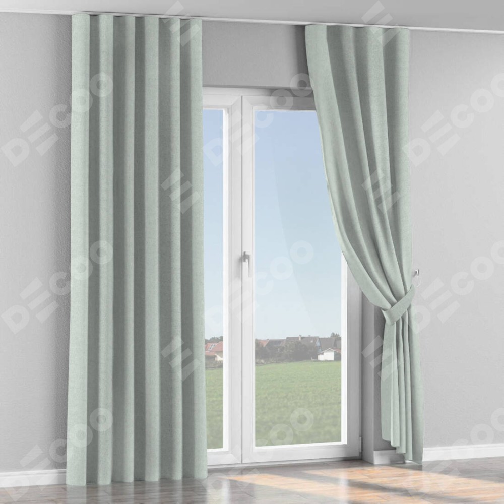 Комплект прямых штор, от производителя «Cortin», пошиты из ткани лён блэкаут белый, артикул ткани 69451. С изнаночной стороны в верхней части штор пристрачивается шторная лента с декоративными складками «Волна». Для создания элегантных складок прямые шторы шьются по стандарту с коэффициентом 1:2 (на 100 см. ширины проёма 200 см. ширины ткани).