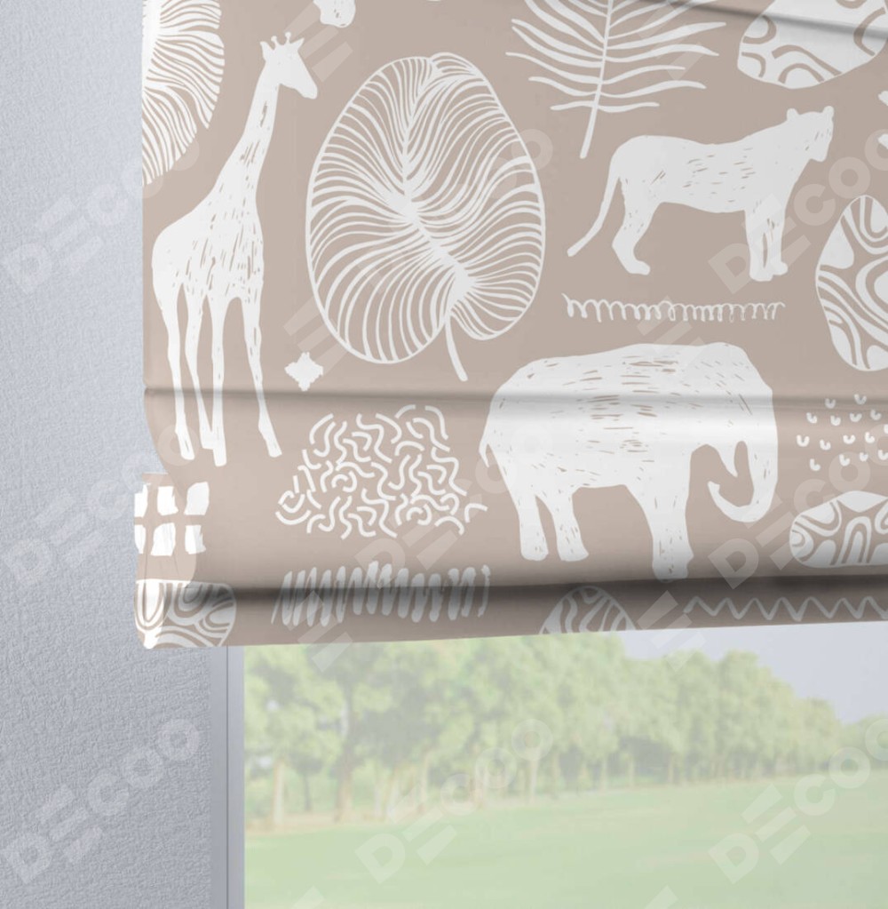 Римская штора на петлях «Африканские животные» предоставлена в следующих характеристиках:
