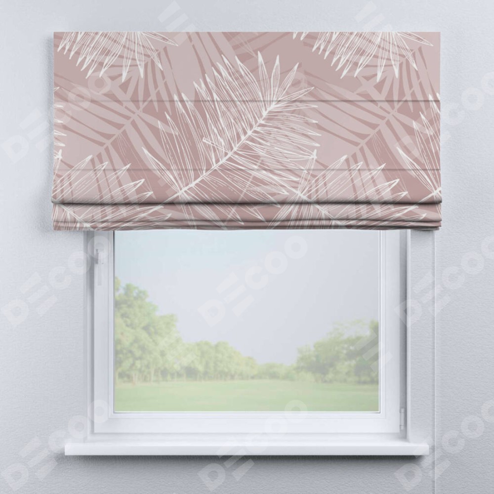Римская штора «Кортин» для проема «Бежевые тропики» отлично подойдёт для интерьера: на балкон, в спальню и в кухню.