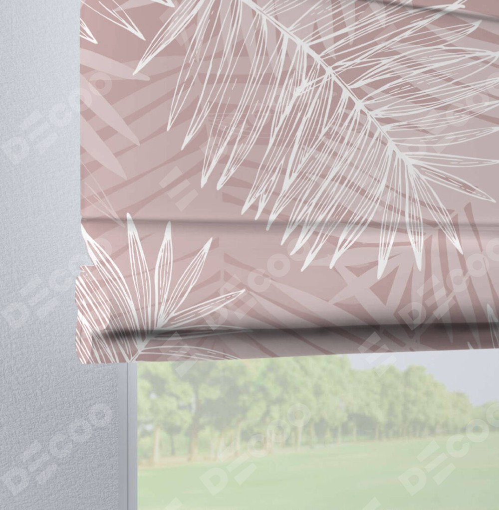 Римская штора на петлях «Бежевые тропики» отлично подойдёт для интерьера: в кухню, в спальню и на балкон.