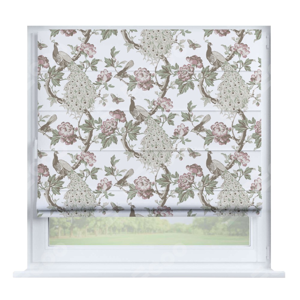 Римская штора производителя «Cortin», устанавливается на створку окна, пошита из ткани блэкаут с нанесением сублимационной печати «Старинные цветы». Штора шьётся по индивидуальным размерам, для данного типа римской шторы возможная ширина от 35 до 150 см., высота до 250 см.