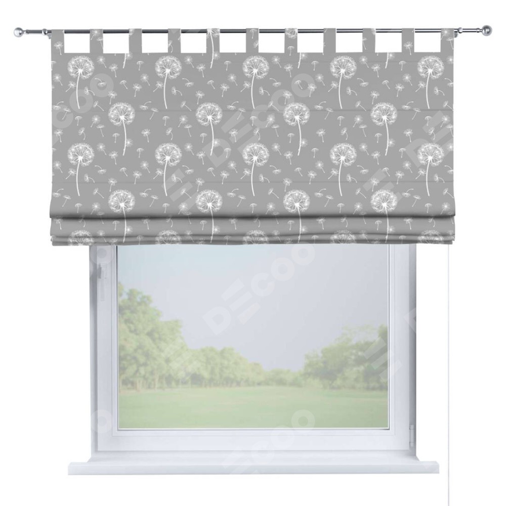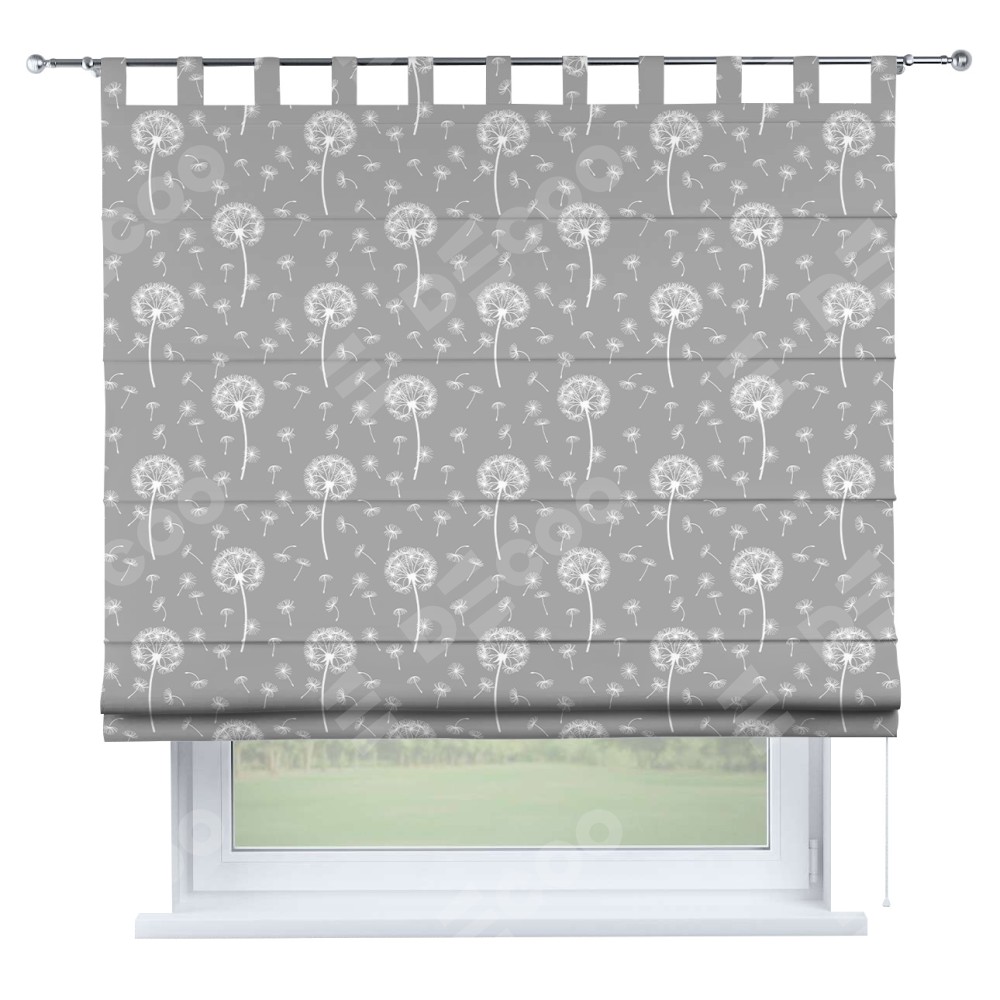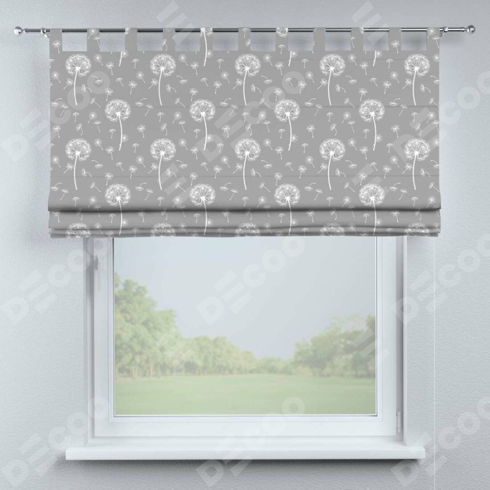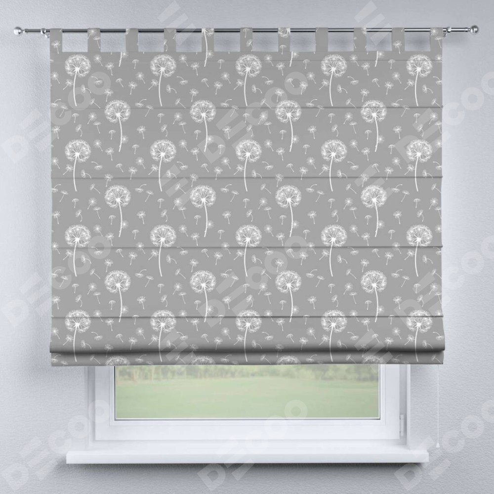 Римская штора производителя «Cortin», используется для проёма, пошита из ткани блэкаут с нанесением сублимационной печати «Одуванчики». Данная модель пошита на петлях, комплектуется на выбор круглым карнизом и подходит для монтажа на стену. Римская штора на петлях имеет простую систему регулировки высоты, отличительным преимуществом данной модели является простой способ монтажа. Достаточно повесить ее на трубу и штора готова!