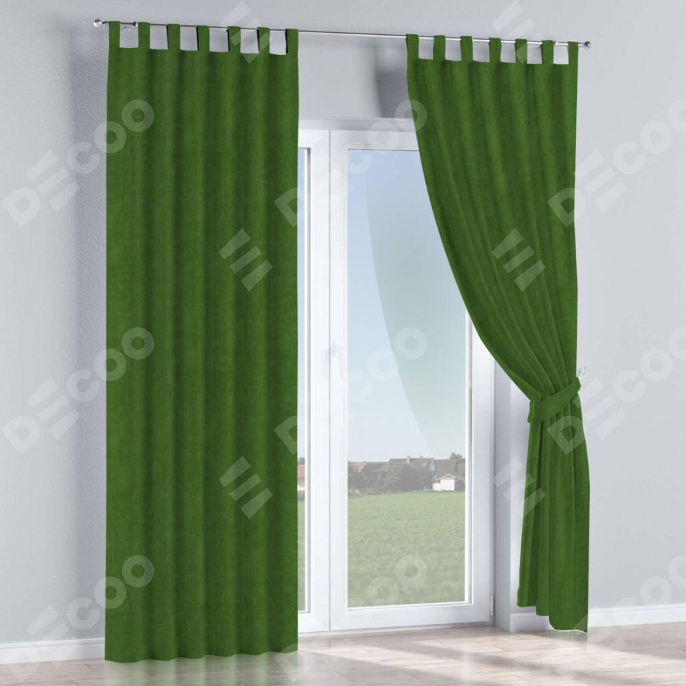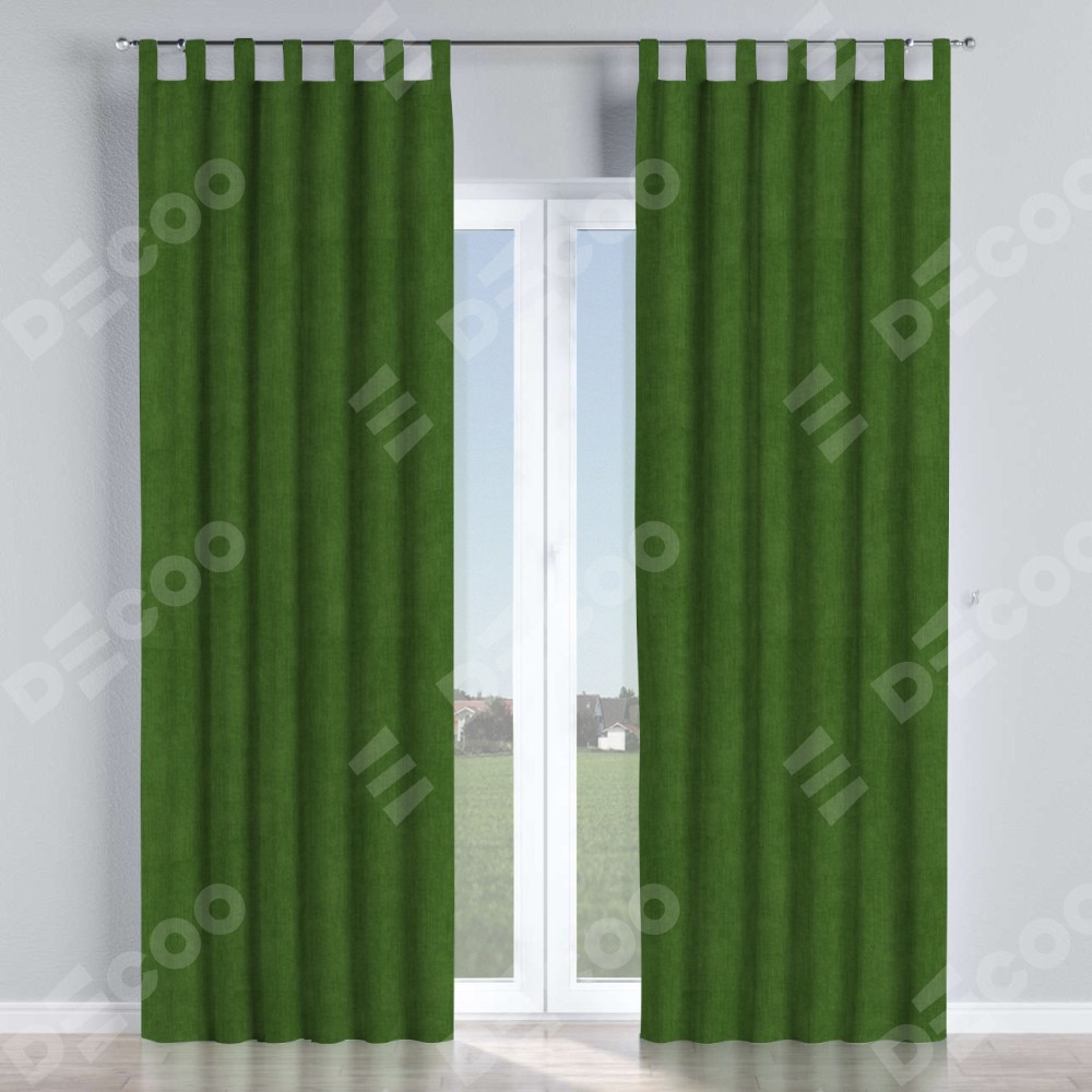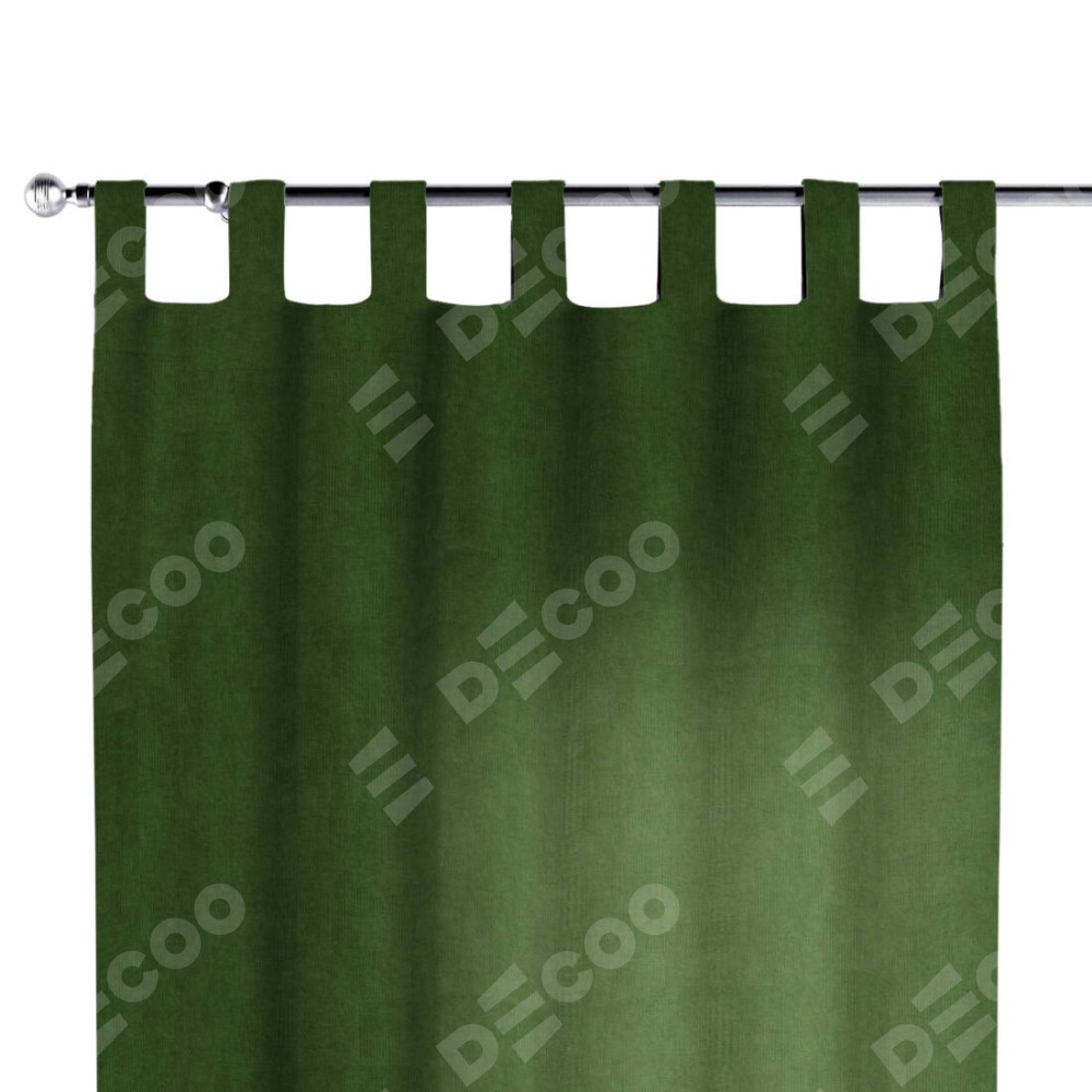 Комплект прямых штор, от производителя «Cortin», пошиты из ткани вельвет тёмно-салатовый, артикул ткани 33805. Данная модель пошита на петлях, комплектуется на выбор круглым карнизом и подходит для монтажа на стену или потолок. Прямые шторы на петлях шьются по стандарту с коэффициентом 1/2 (на 100 см. ширины проёма 200 см. ширины ткани), отличительным преимуществом данной модели является простой способ монтажа. Достаточно повесить ее на трубу и штора готова!