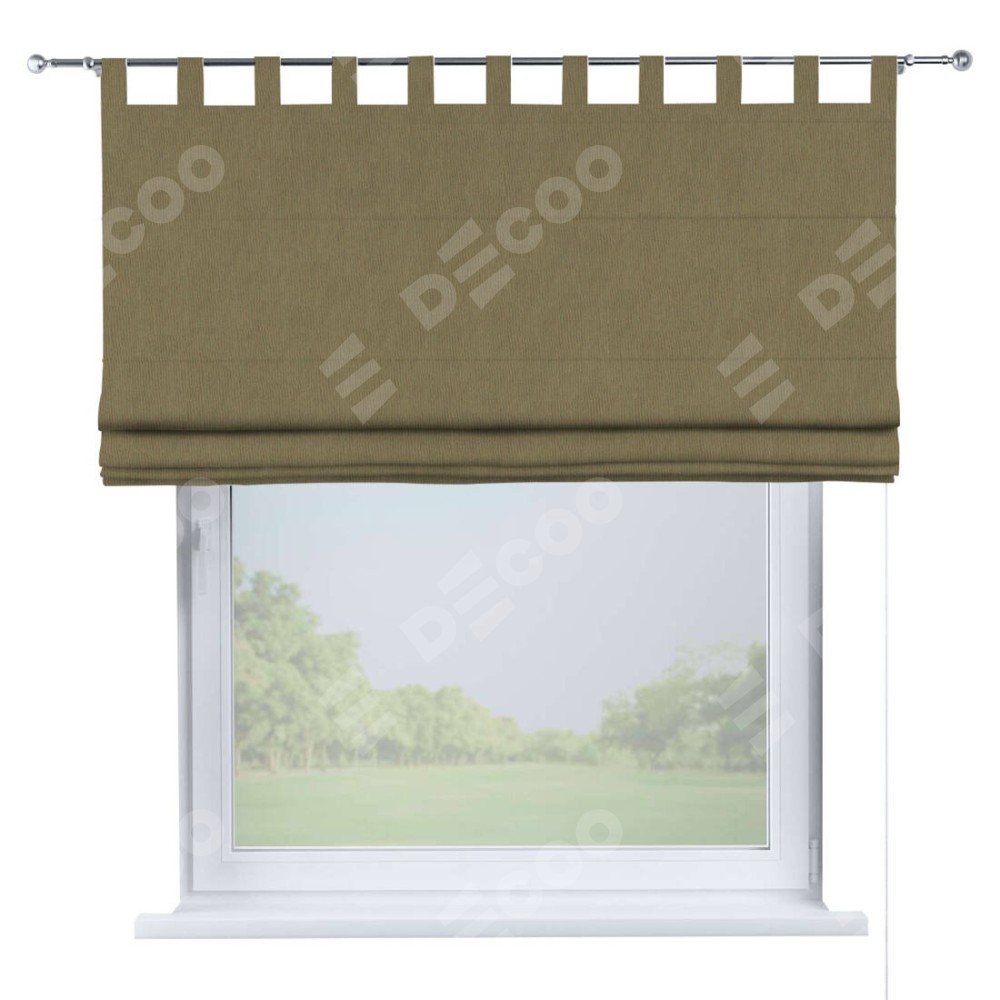 Римская штора производителя «Cortin», используется для проёма, пошита из ткани блэкаут однотонный бежево-золотой, артикул ткани 12095−2. Данная модель пошита на петлях, комплектуется на выбор круглым карнизом и подходит для монтажа на стену. Римская штора на петлях имеет простую систему регулировки высоты, отличительным преимуществом данной модели является простой способ монтажа. Достаточно повесить ее на трубу и штора готова!