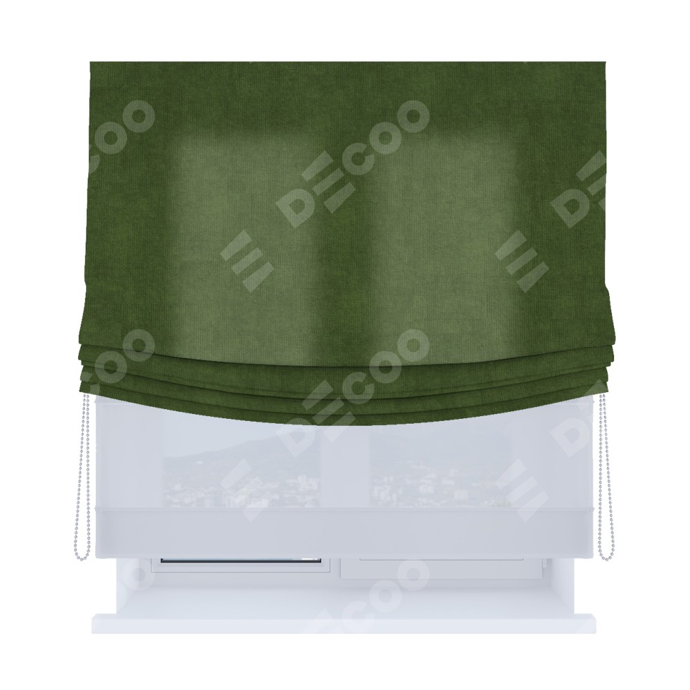 Римская штора «Кортин», день-ночь с мягкими складками, вельвет тёмно-салатовый