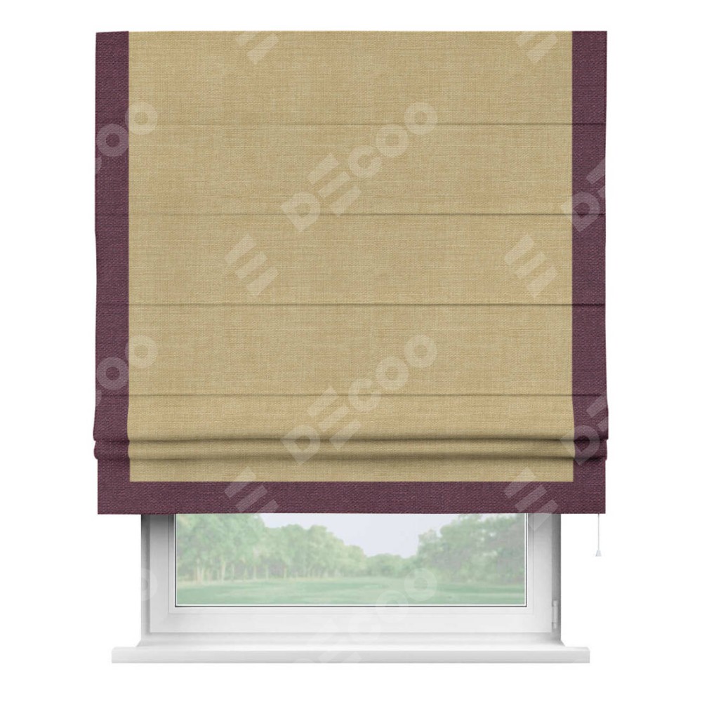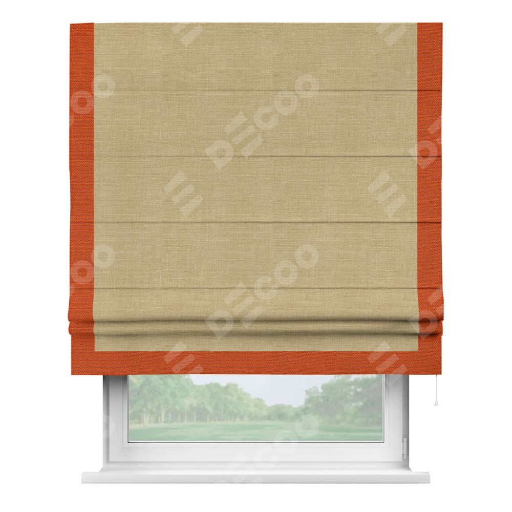 Римская штора «Кортин» с кантом Виктория, для проема, ткань лён бежевый
