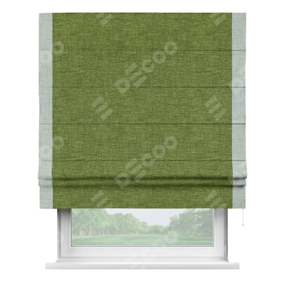 Римская штора «Кортин» с кантом Стрим Дуо, для проема, ткань рогожка димаут, салатовый