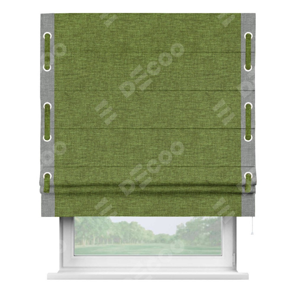Римская штора «Кортин» с кантом Стрим Дуо (люверсы с пояском), для проема, ткань рогожка димаут, салатовый