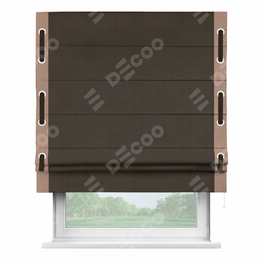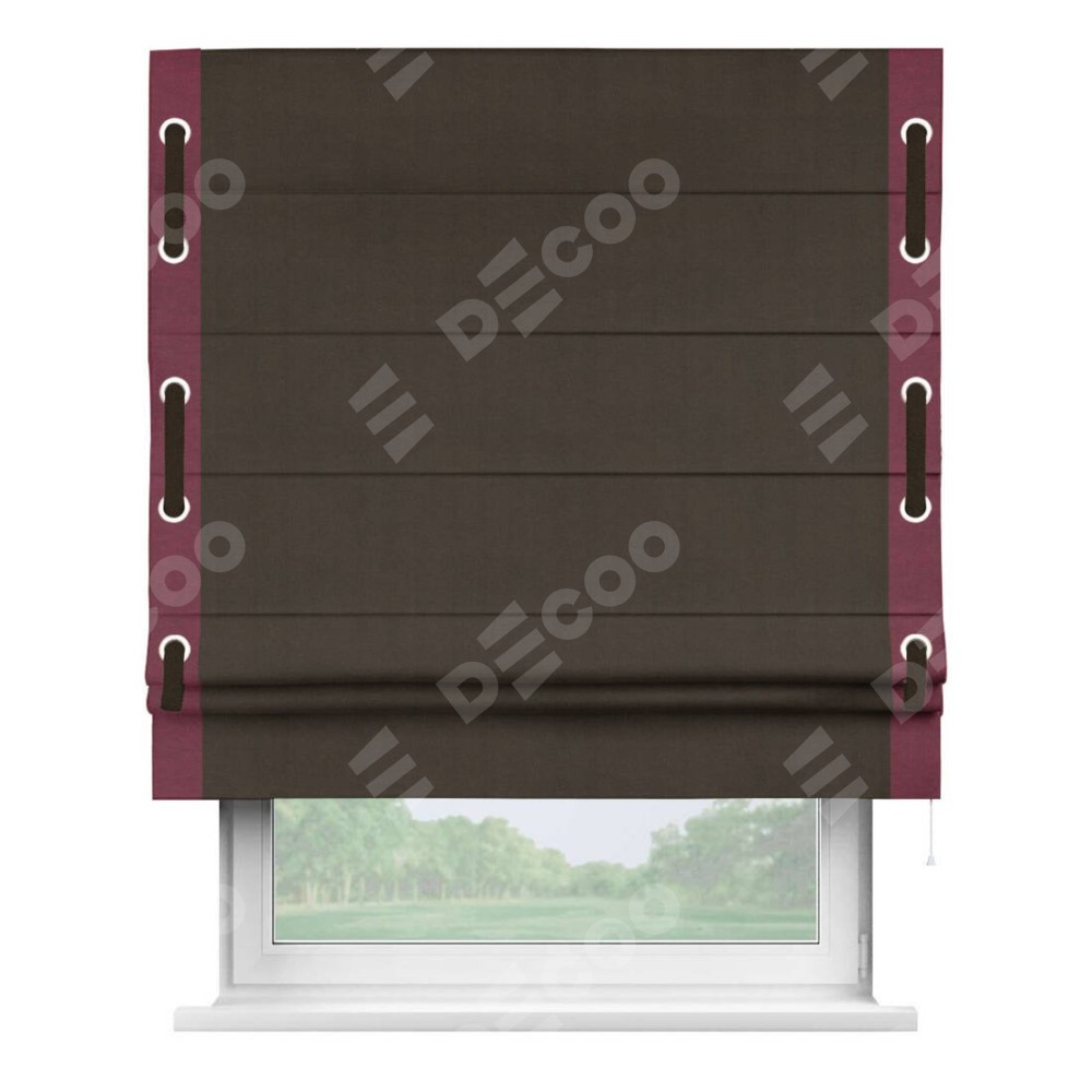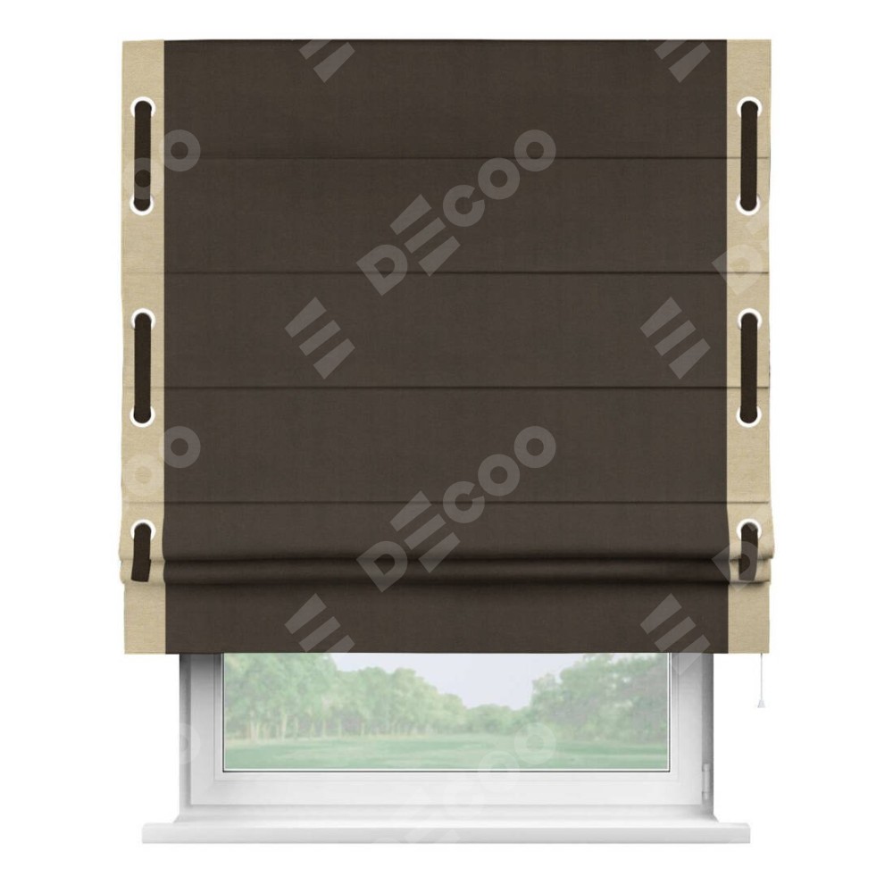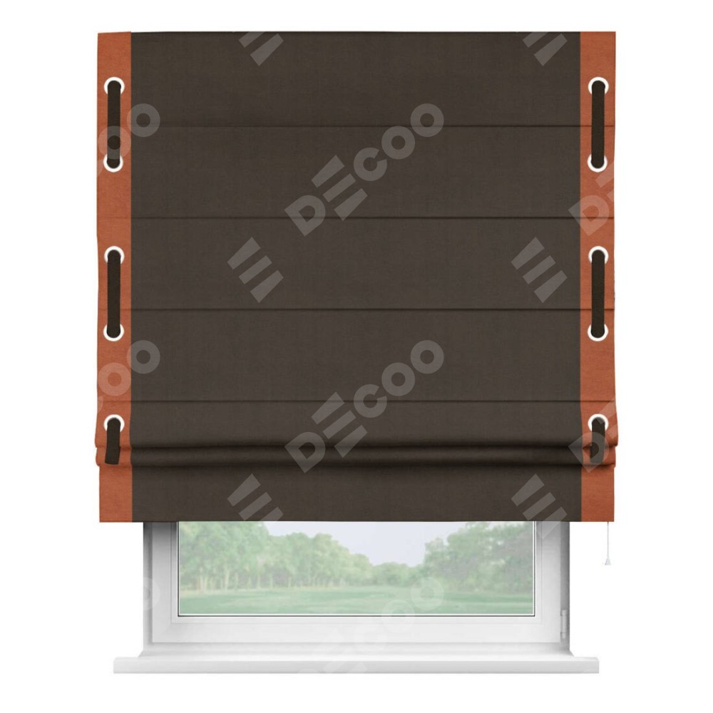 Римская штора «Кортин» с кантом Стрим Дуо (люверсы с пояском), для проема, ткань вельвет тёмно-коричневый