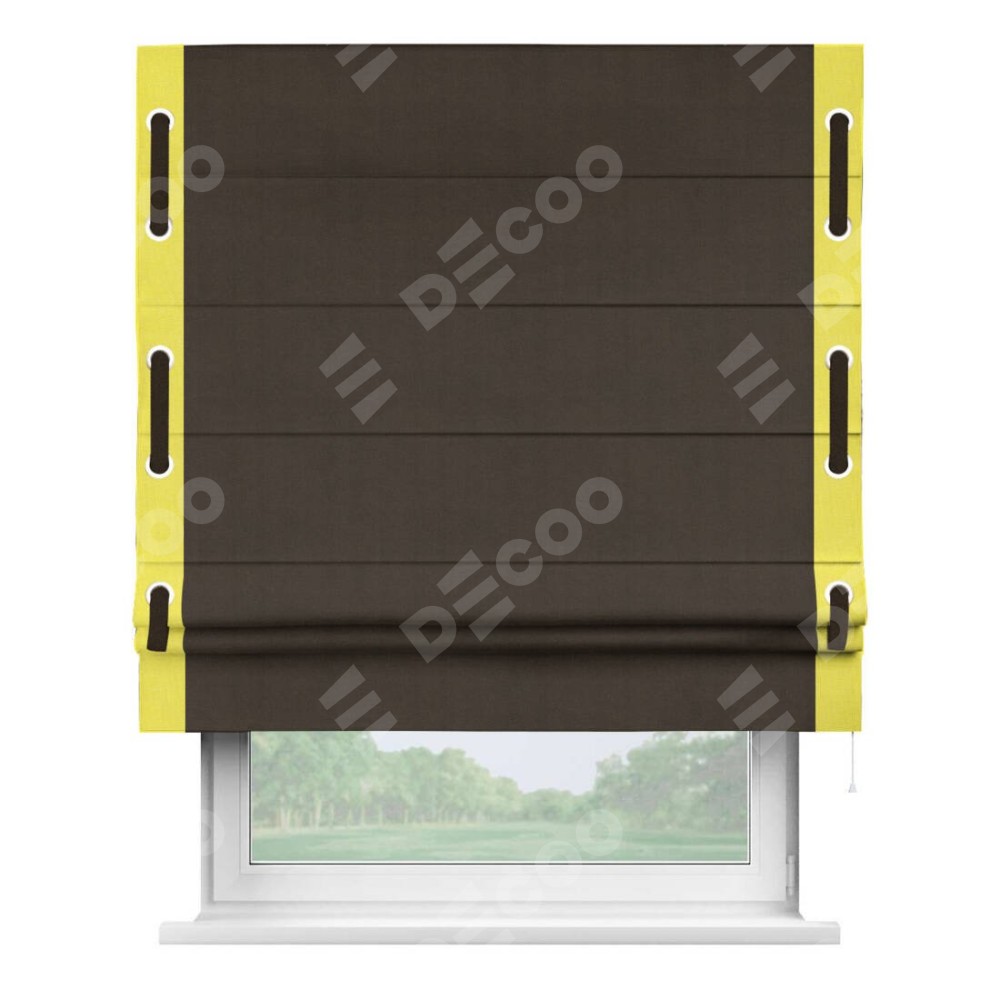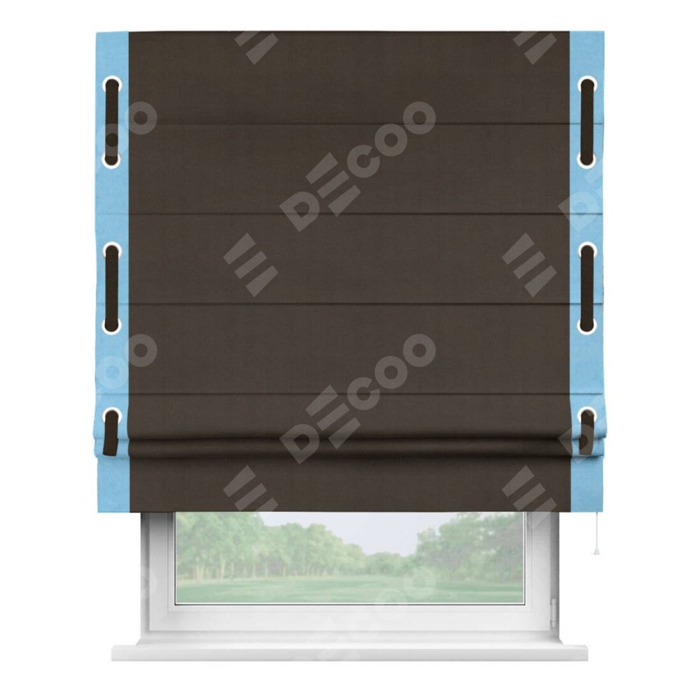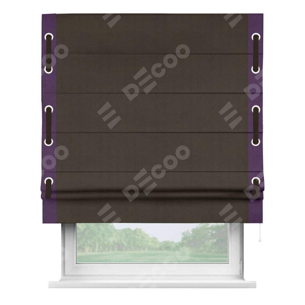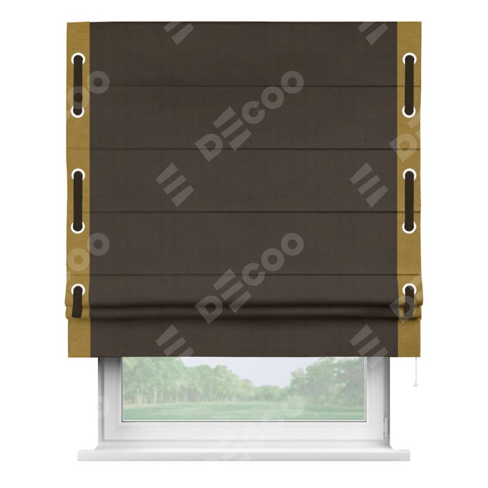 Римская штора «Кортин» с кантом Стрим Дуо (люверсы с пояском), для проема, ткань вельвет тёмно-коричневый