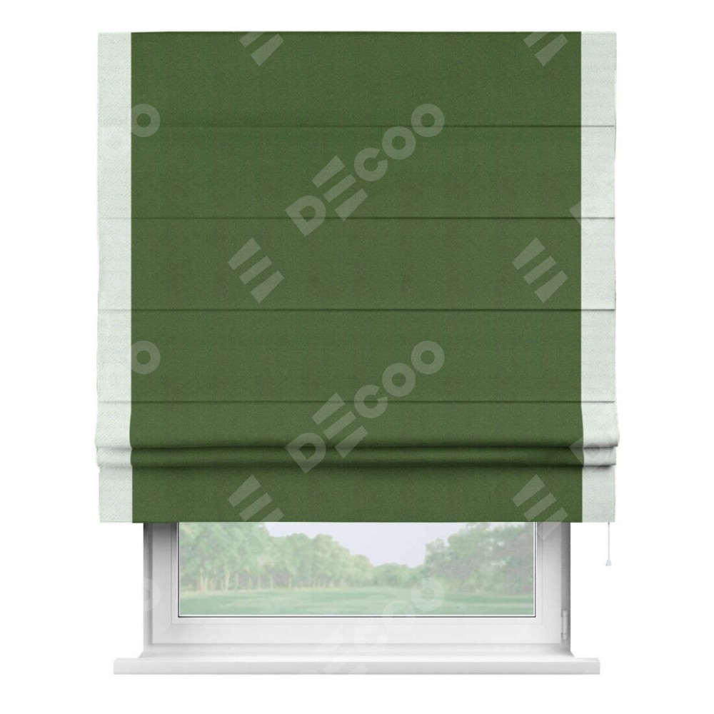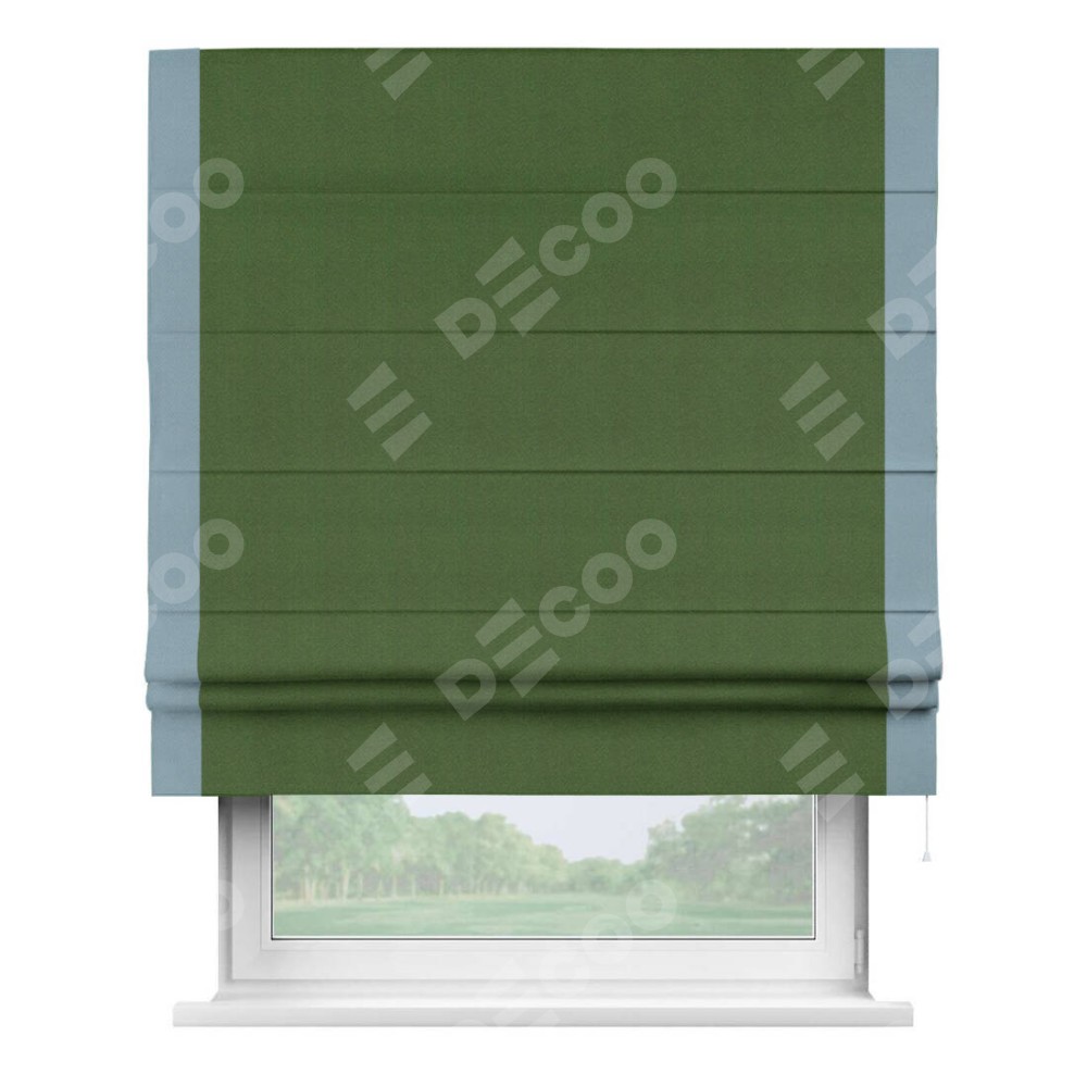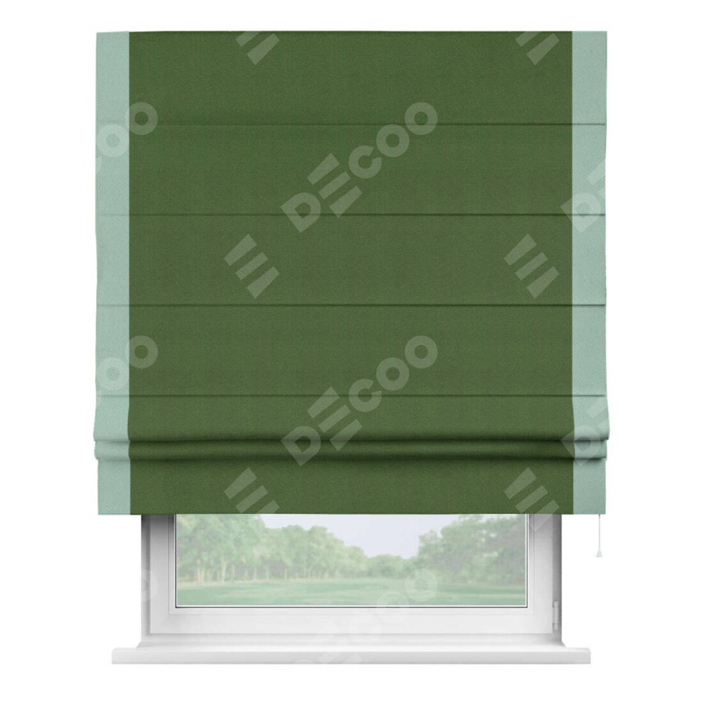 Римская штора «Кортин» с кантом Стрим Дуо, для проема, ткань блэкаут однотонный зелёный перламутр