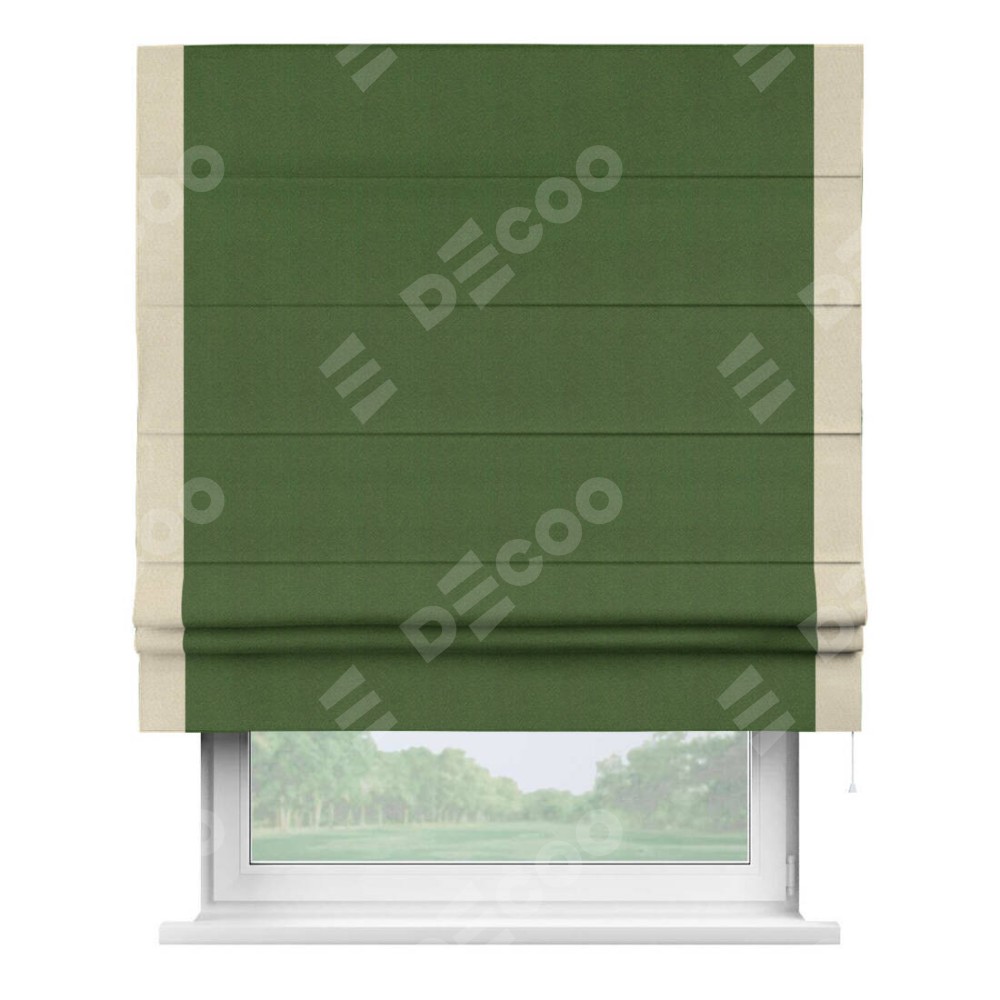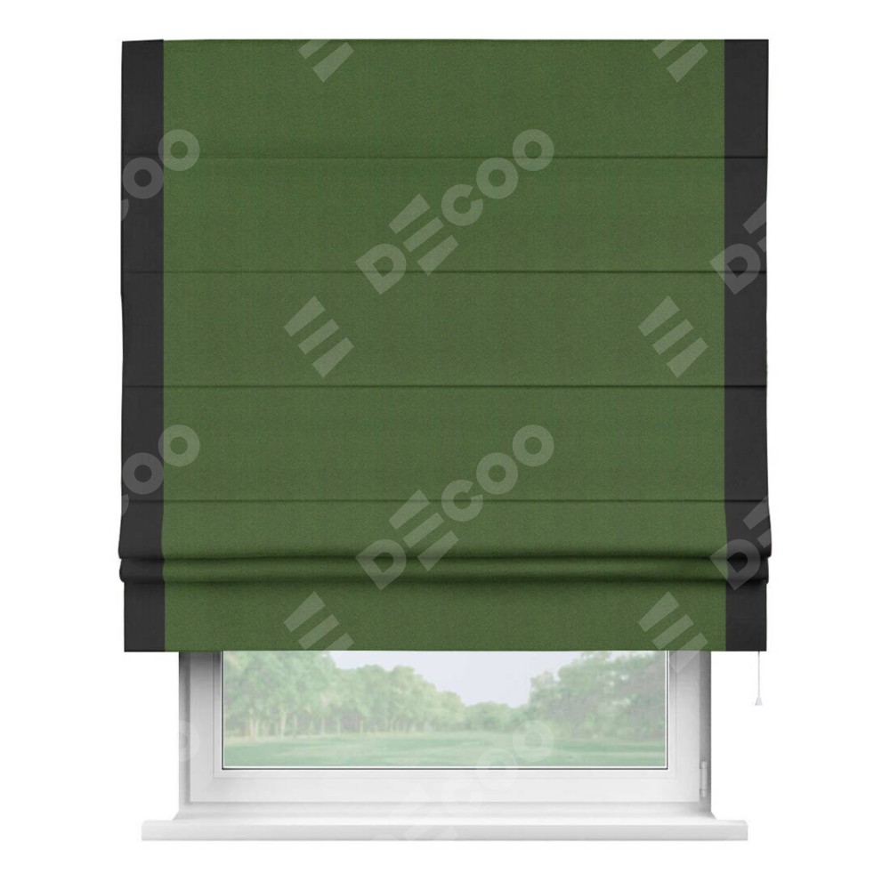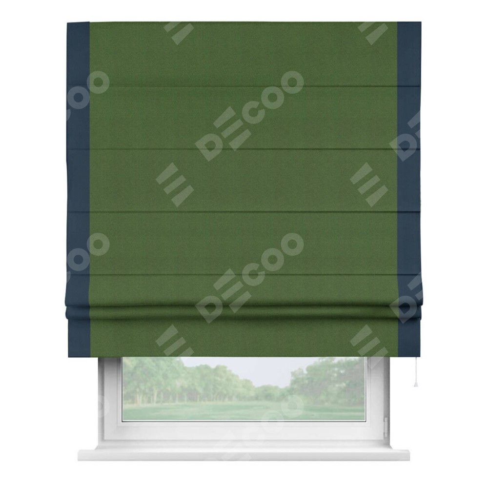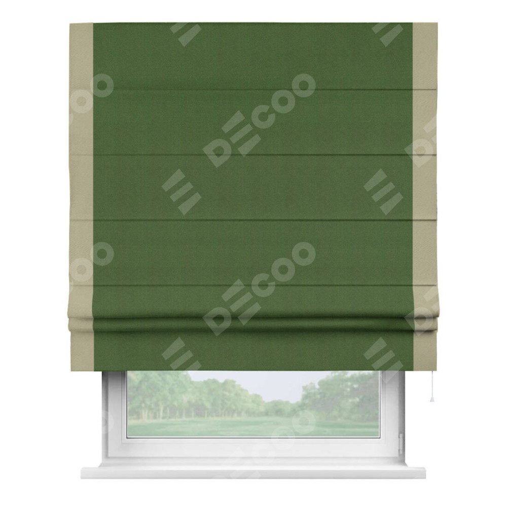 Римская штора «Кортин» с кантом Стрим Дуо, для проема, ткань блэкаут однотонный зелёный перламутр