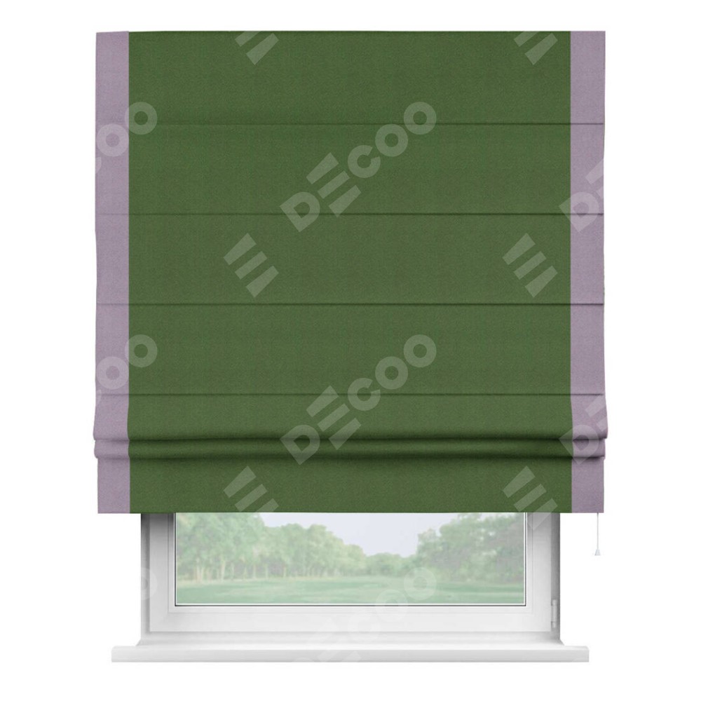 Римская штора «Кортин» с кантом Стрим Дуо, для проема, ткань блэкаут однотонный зелёный перламутр доступна к заказу по по вашим размерам. Её артикул: 24919. Стоимость заказа будет зависеть от размерных характеристик и будет начинаться от 3 469 руб. В интернет-магазине Decoo вы сможете заказать товар в любых размерах.