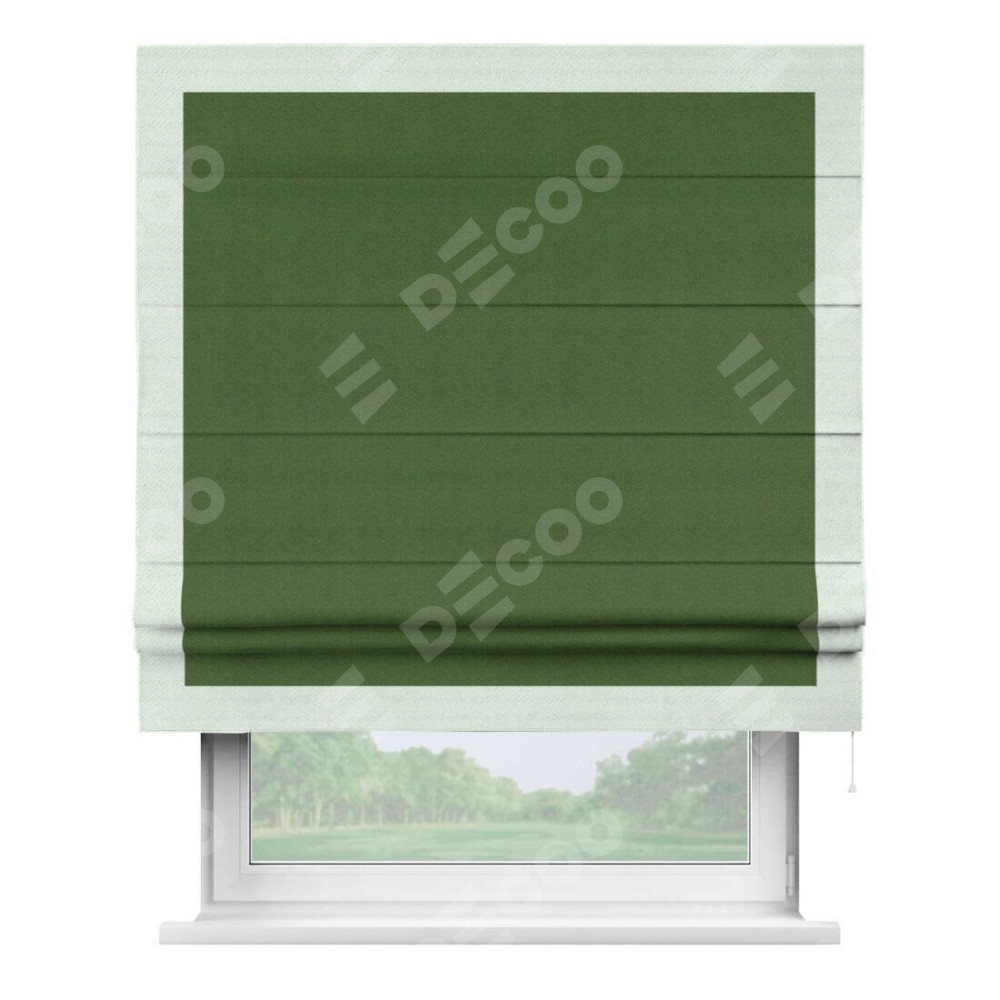 Римская штора «Кортин» с кантом Чесс, для проема, ткань блэкаут однотонный зелёный перламутр