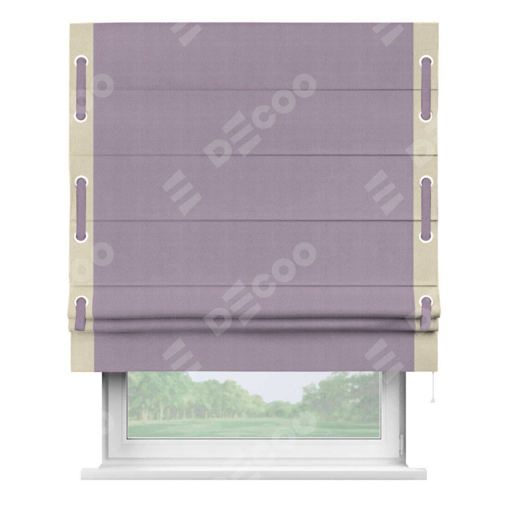 Римская штора «Кортин» с кантом Стрим Дуо (люверсы с пояском), для проема, ткань блэкаут однотонный светло-сиреневый
