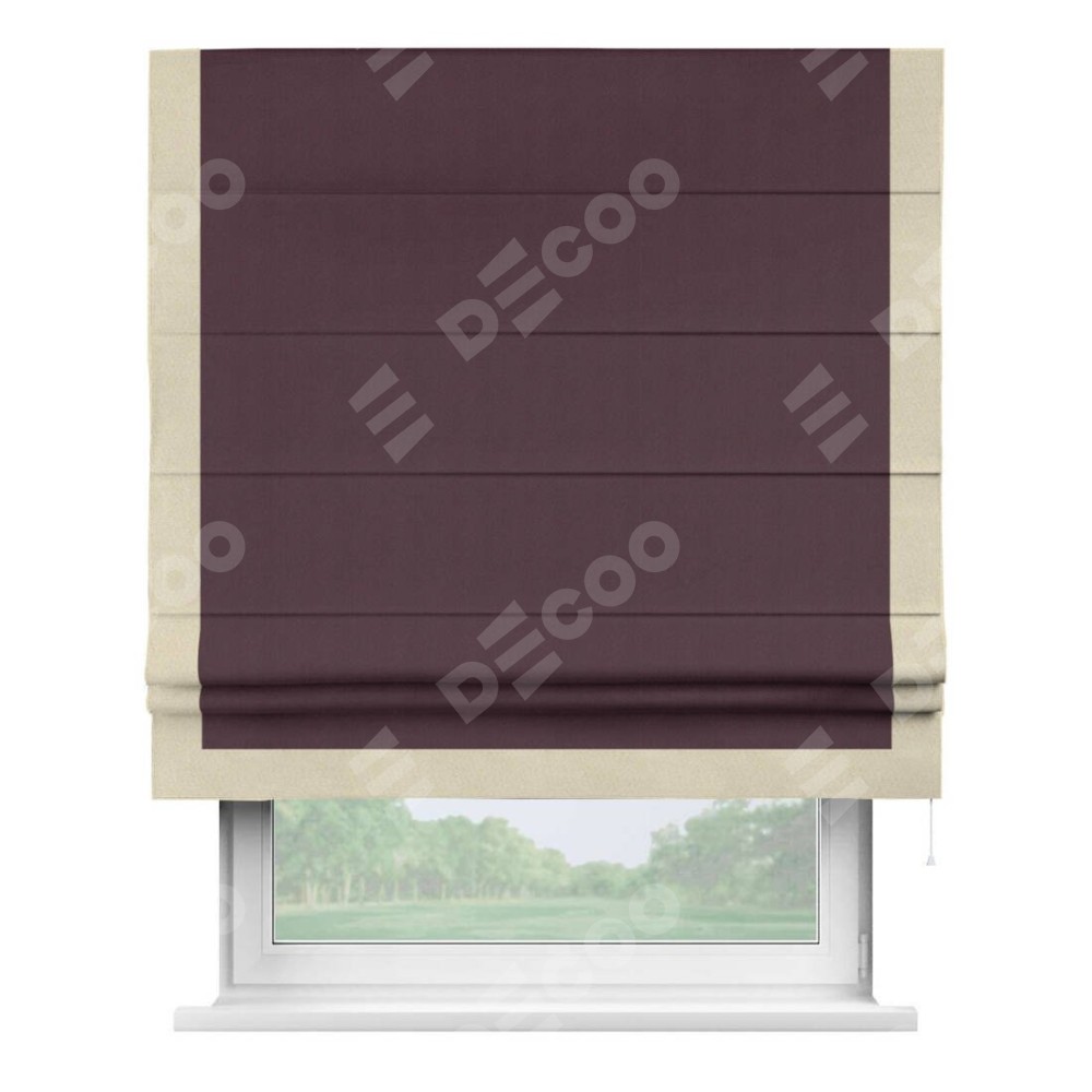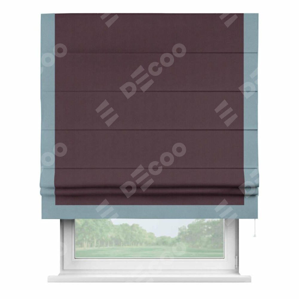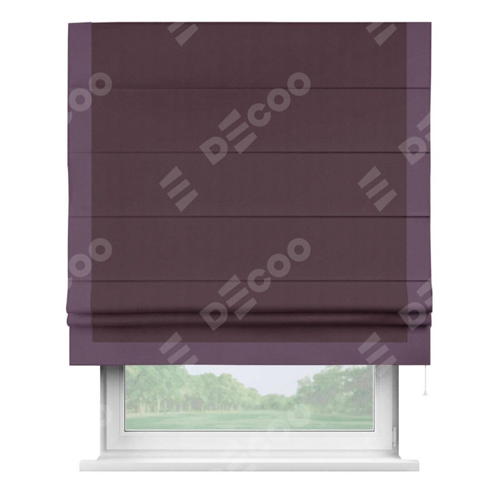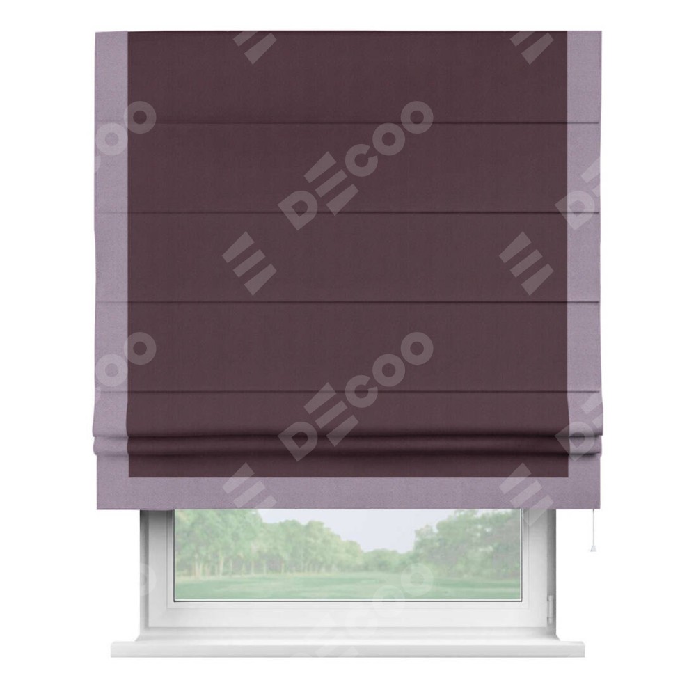 Римская штора производителя «Cortin», используется для проёма, пошита из ткани блэкаут однотонный сиреневый, артикул ткани 29333−2. Отделка шторы кантом «Виктория», ткань для канта используется из блэкаута однотонного разной расцветки на выбор. Имеет универсальный механизм и подходит для монтажа: на потолок, на стену и в нишу.
