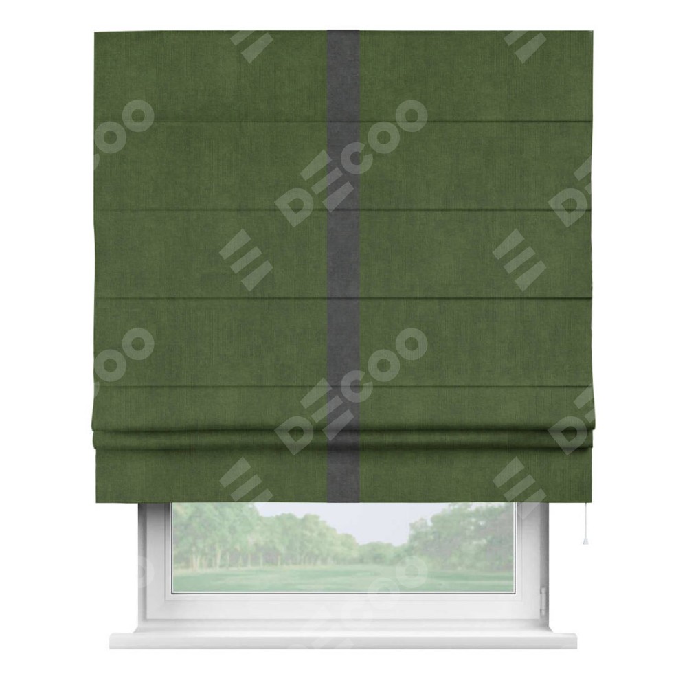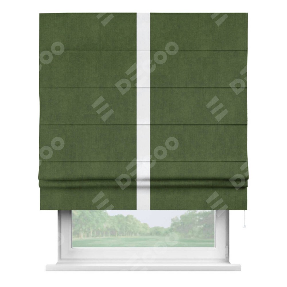 Римская штора «Кортин» с кантом Хайвэй, для проема, ткань вельвет тёмно-салатовый