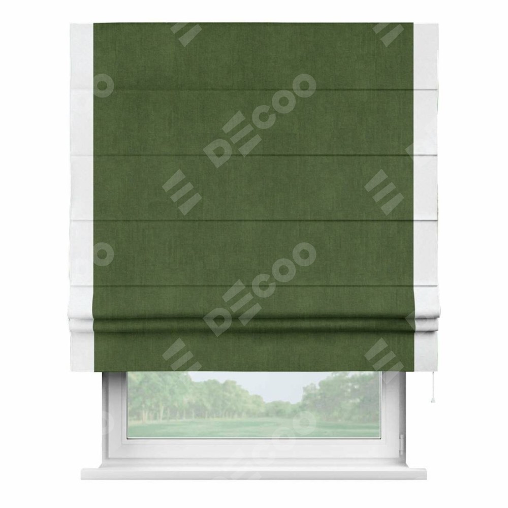 Римская штора «Кортин» с кантом Стрим Дуо, для проема, ткань вельвет тёмно-салатовый