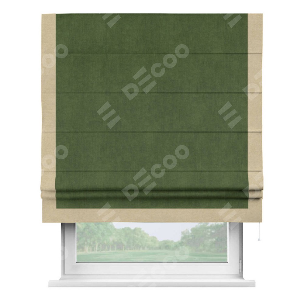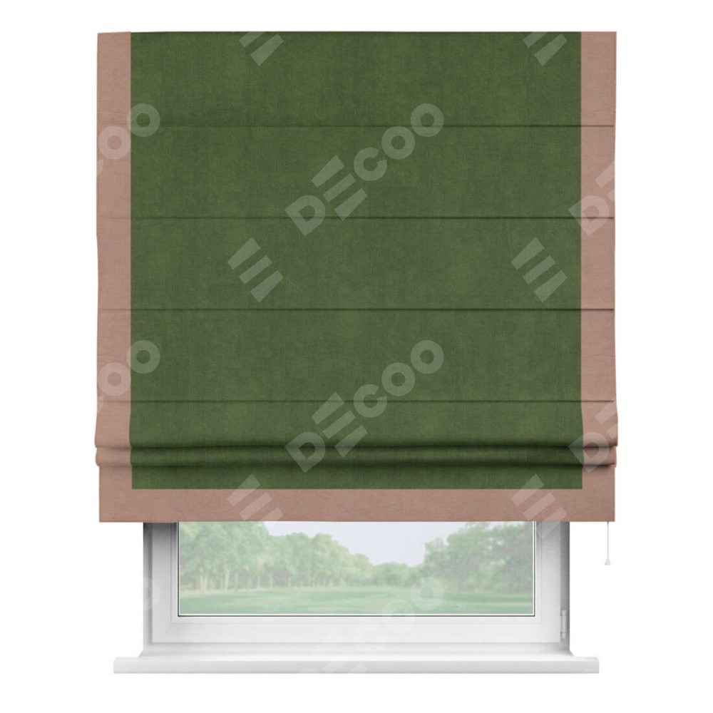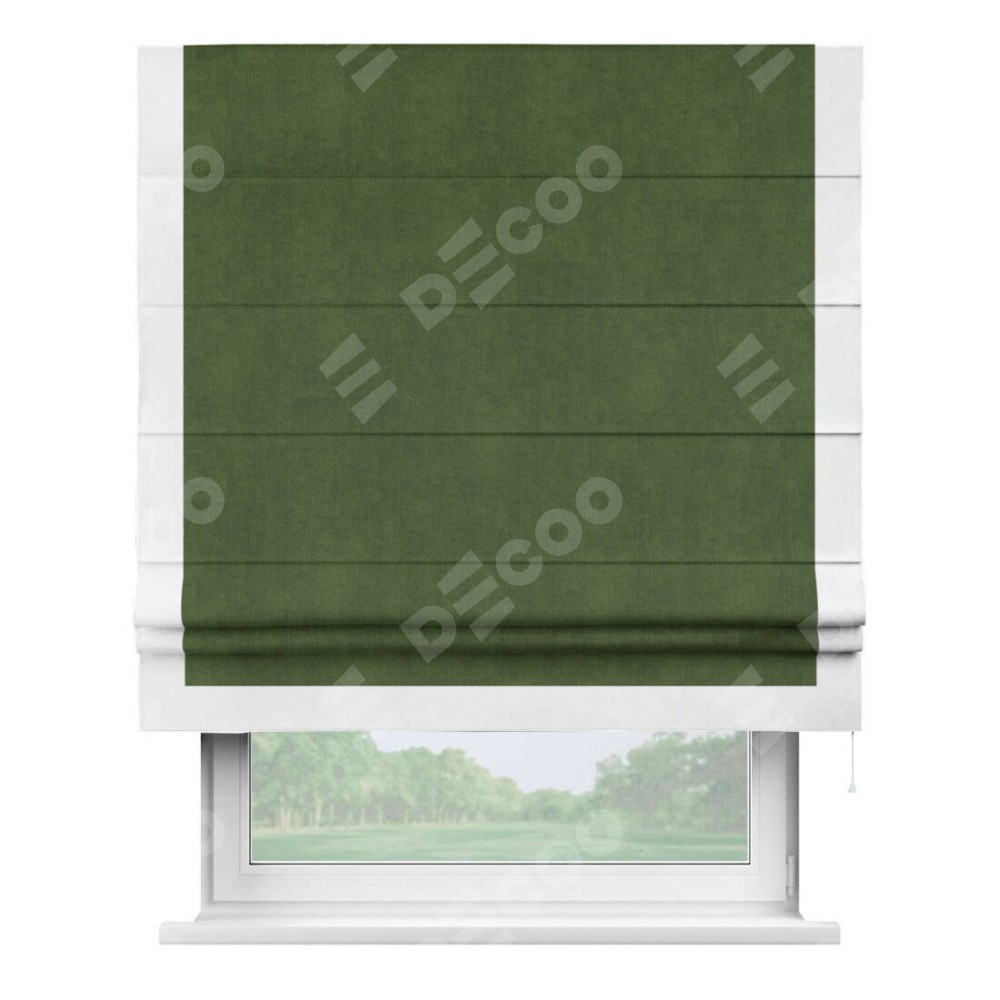 Римская штора «Кортин» с кантом Виктория, для проема, ткань вельвет тёмно-салатовый