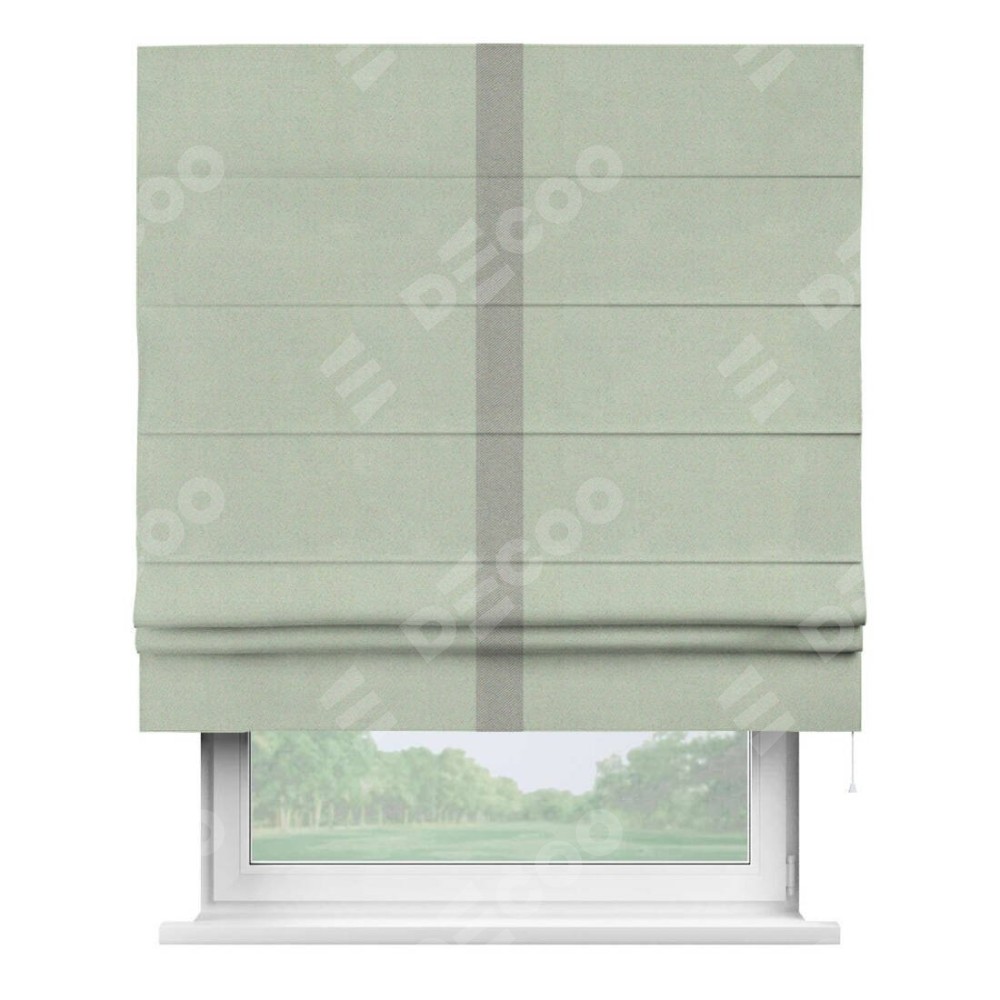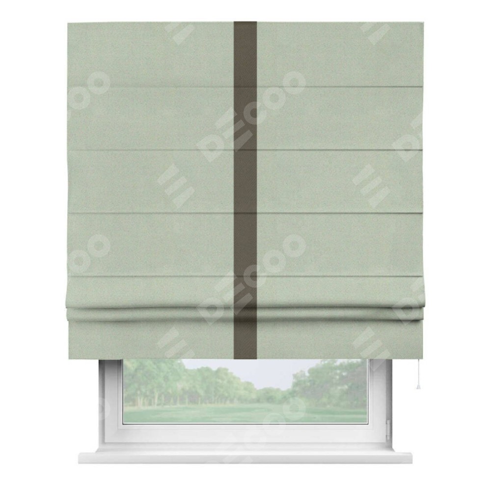 Римская штора производителя «Cortin», используется для проёма, пошита из ткани блэкаут однотонный светло-серый, артикул ткани 29332−2. Отделка шторы кантом «Хайвей», ткань для канта используется из блэкаута однотонного разной расцветки на выбор. Имеет универсальный механизм и подходит для монтажа: на потолок, на стену и в нишу.