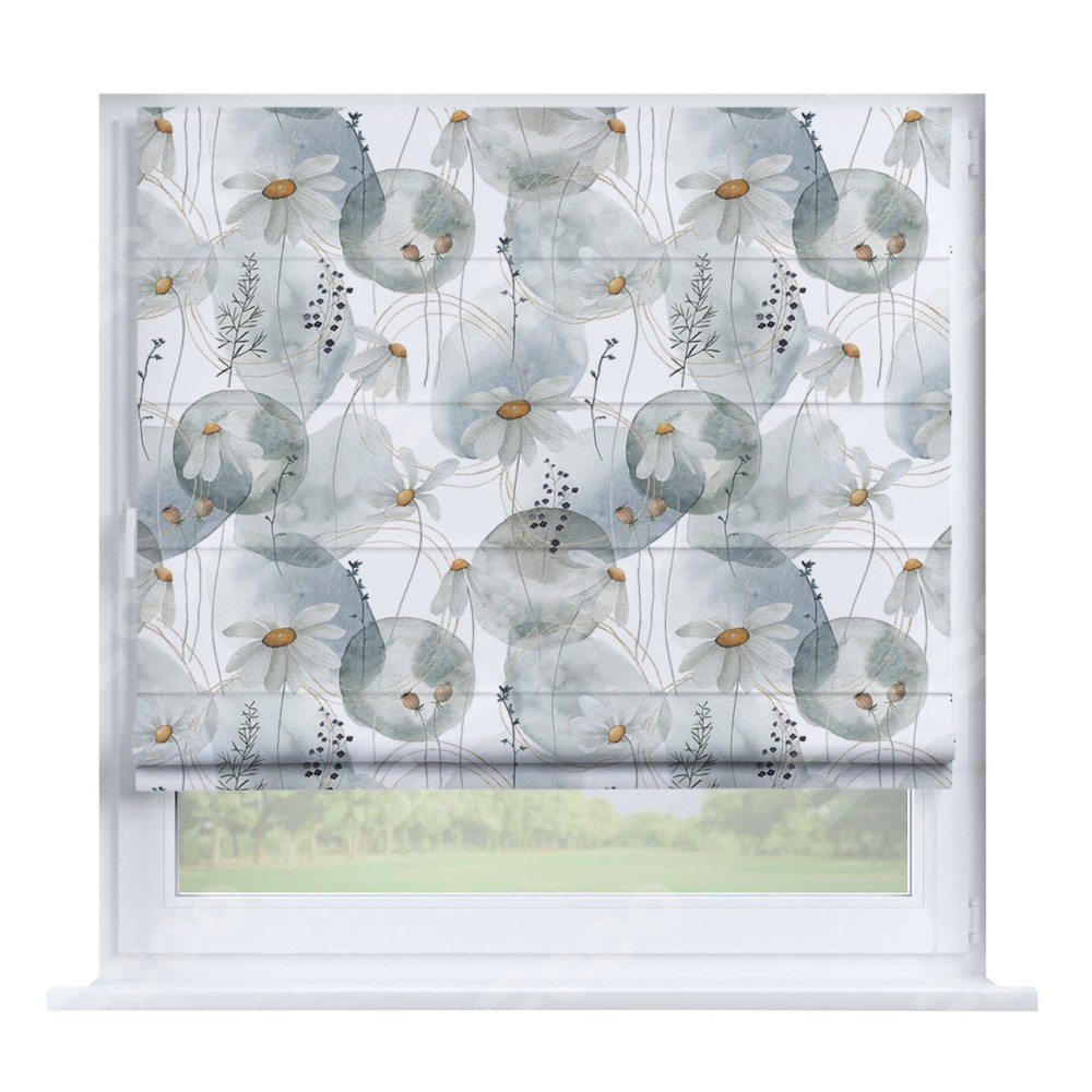 Римская штора «Кортин» на створку «Ромашки акварель»