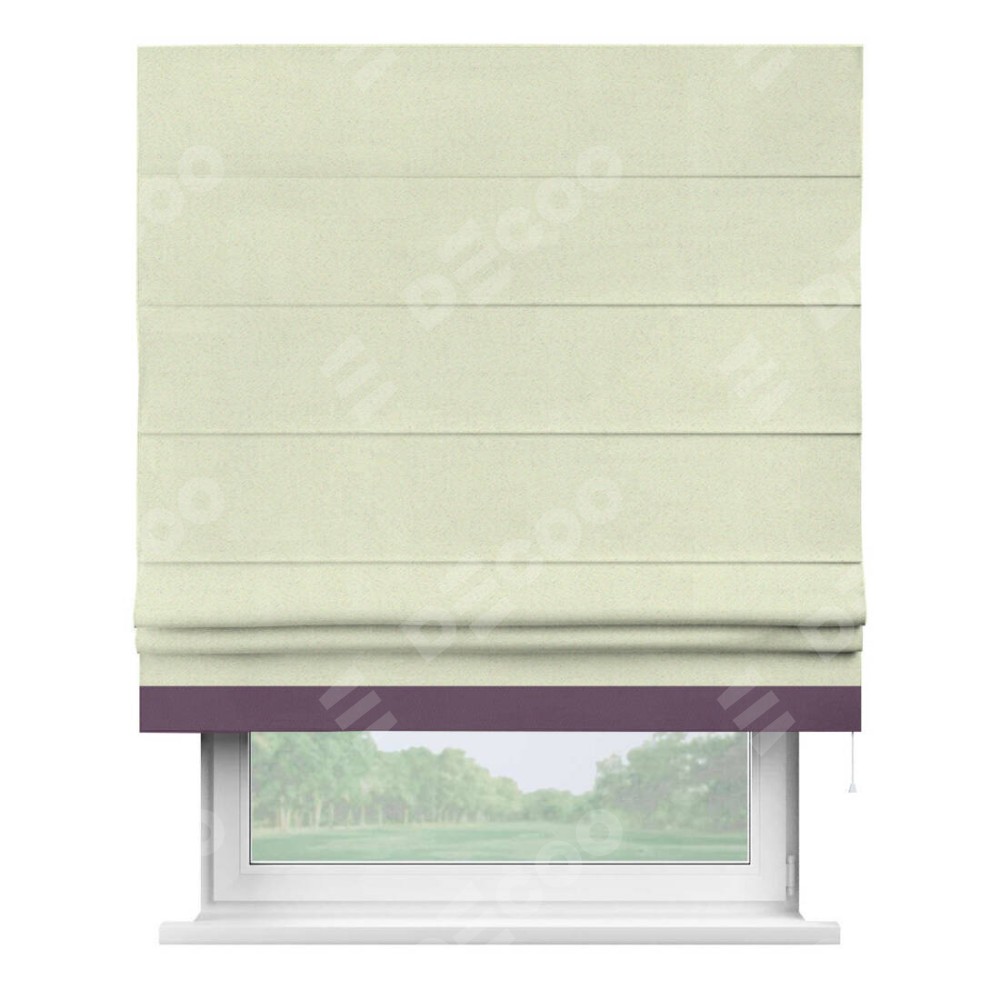 Римская штора производителя «Cortin», используется для проёма, пошита из ткани блэкаут однотонный сливочный, артикул ткани 6668−02. Отделка шторы кантом «Джестер», ткань для канта используется из блэкаута однотонного разной расцветки на выбор. Имеет универсальный механизм и подходит для монтажа: на потолок, на стену и в нишу.