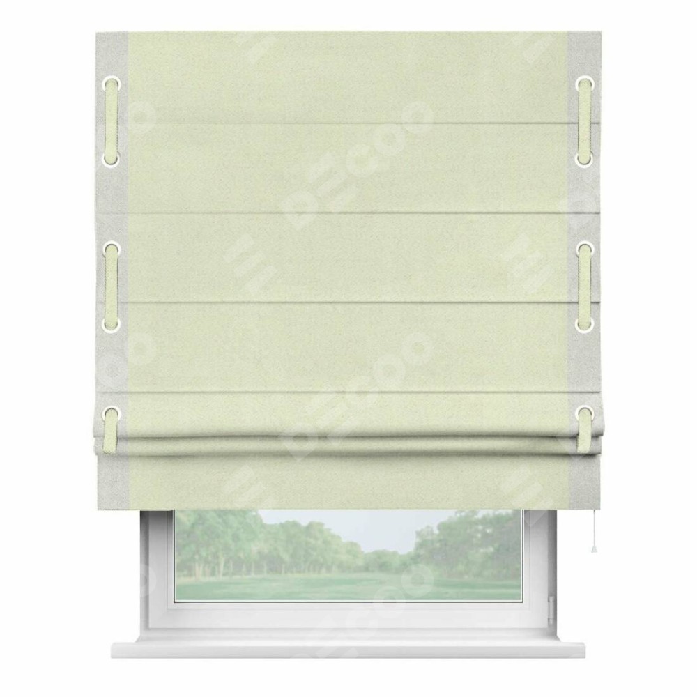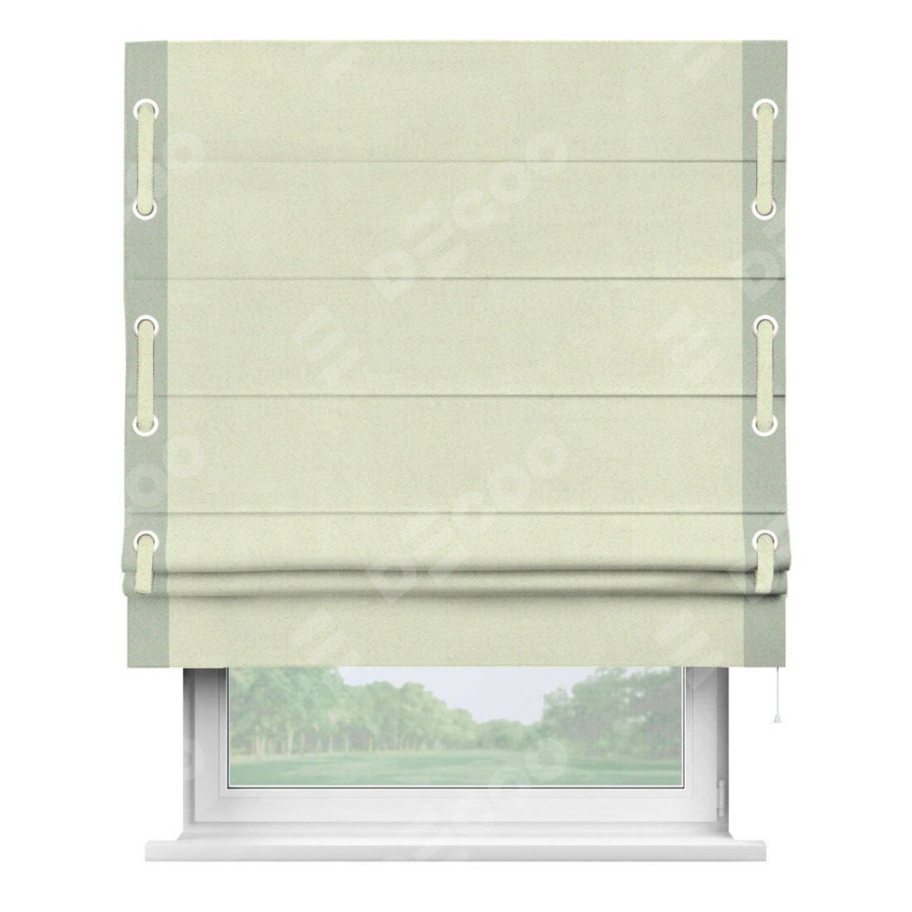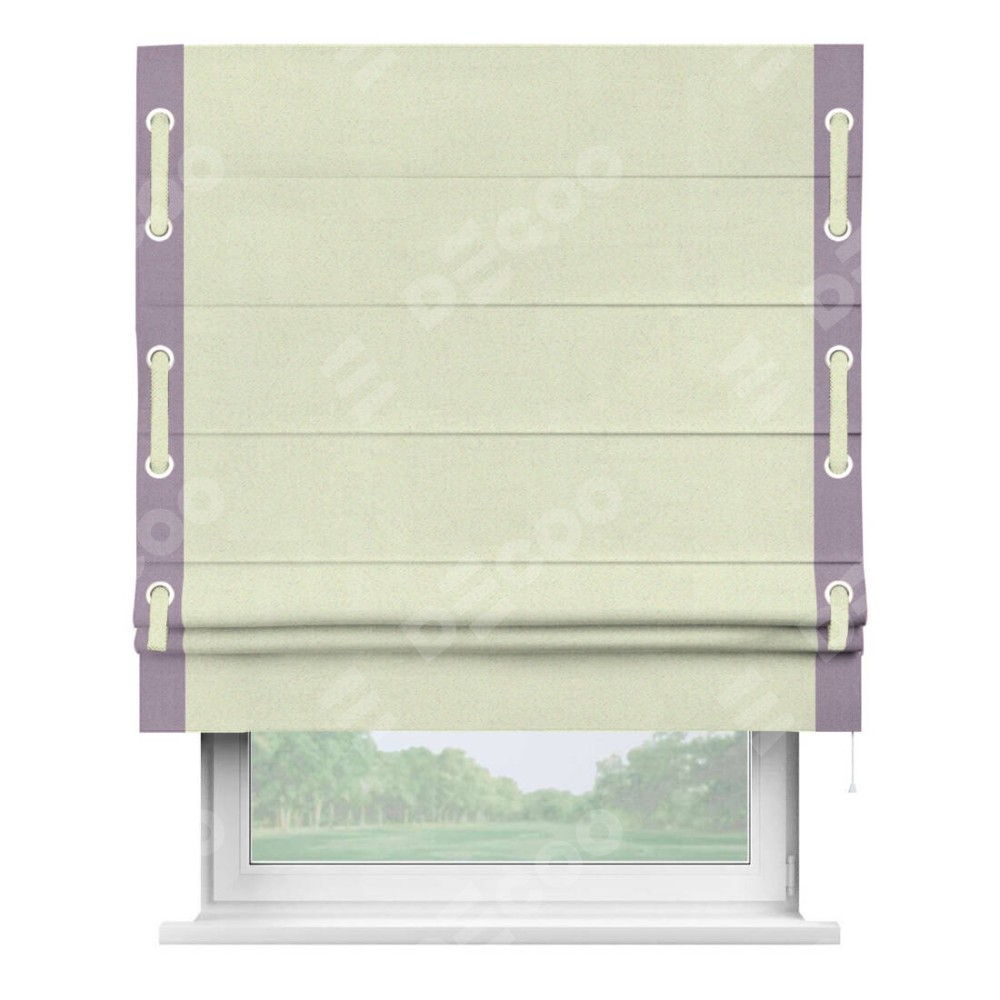 Римская штора «Кортин» с кантом Стрим Дуо (люверсы с пояском) отлично подойдёт для интерьера: в кухню, на балкон и в гостиную.