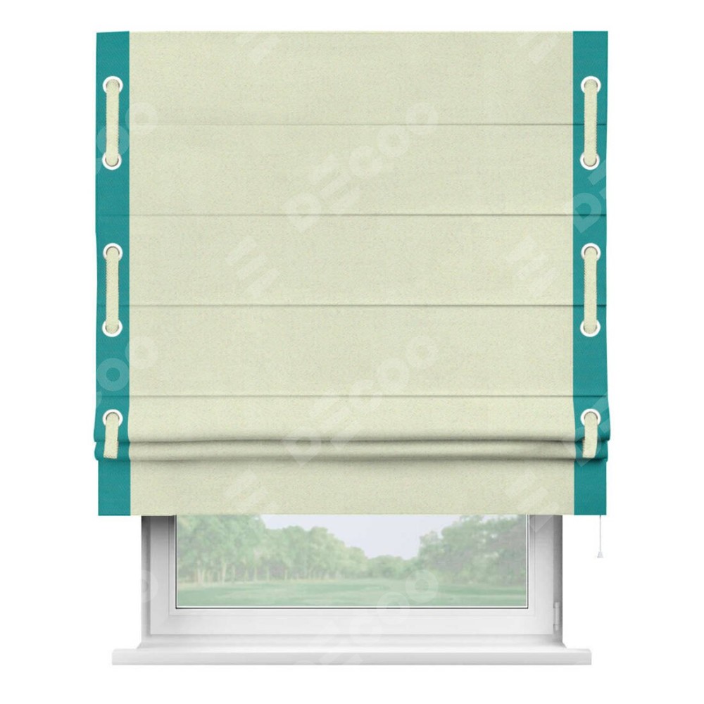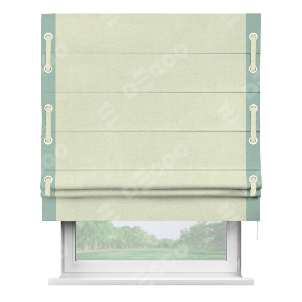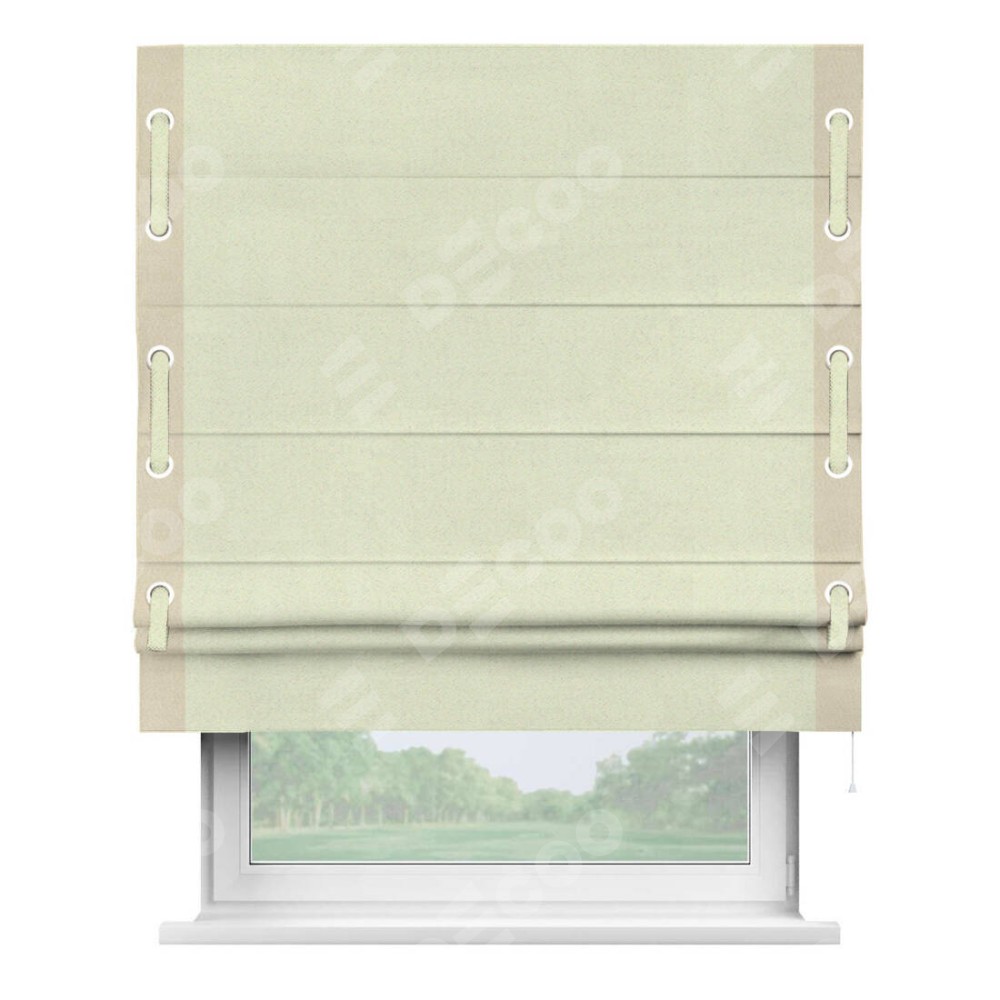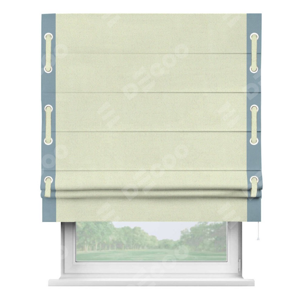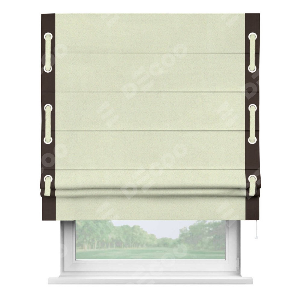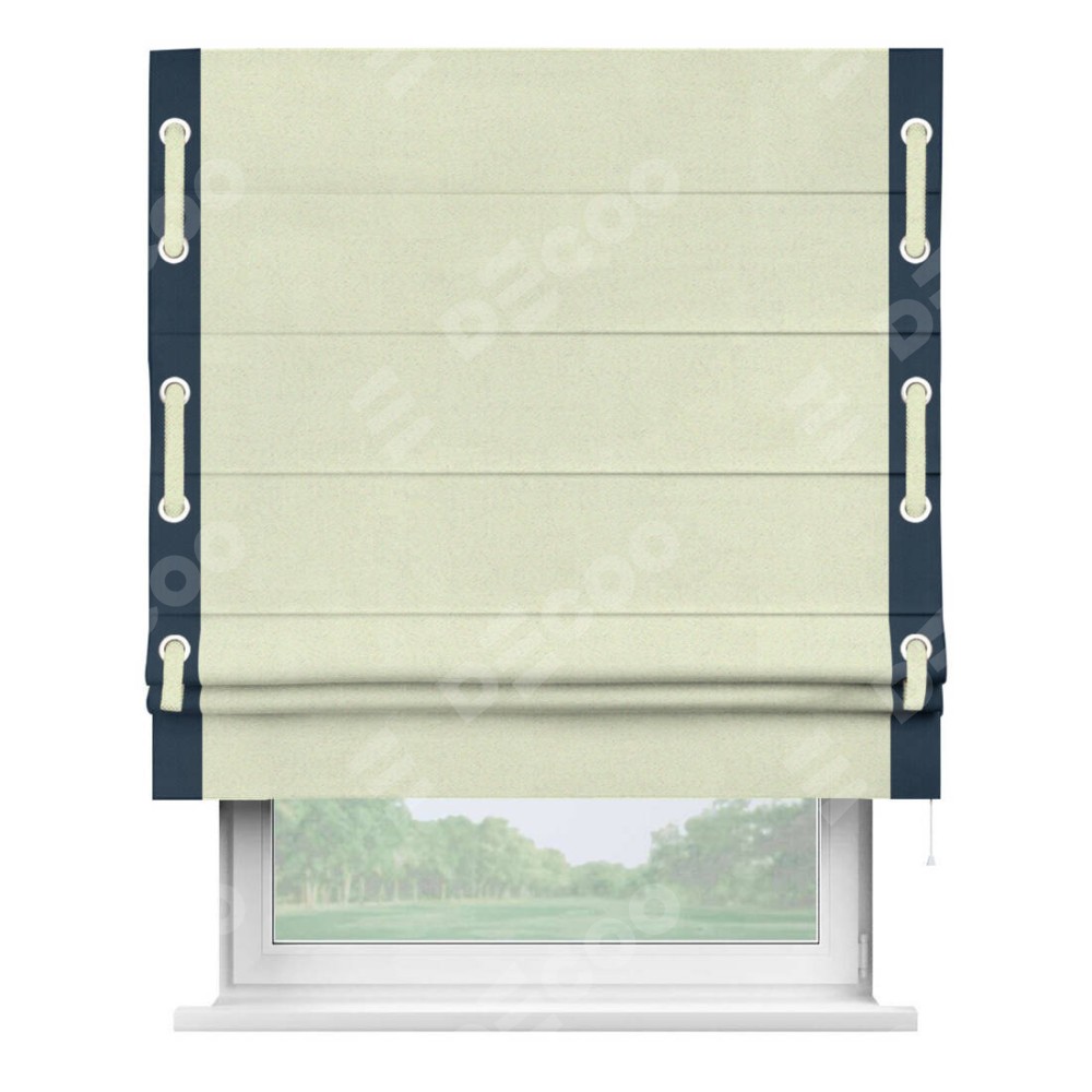 Римская штора «Кортин» с кантом Стрим Дуо (люверсы с пояском), для проема, ткань блэкаут однотонный сливочный