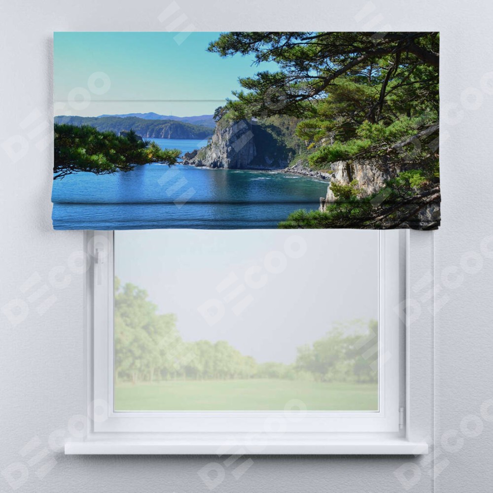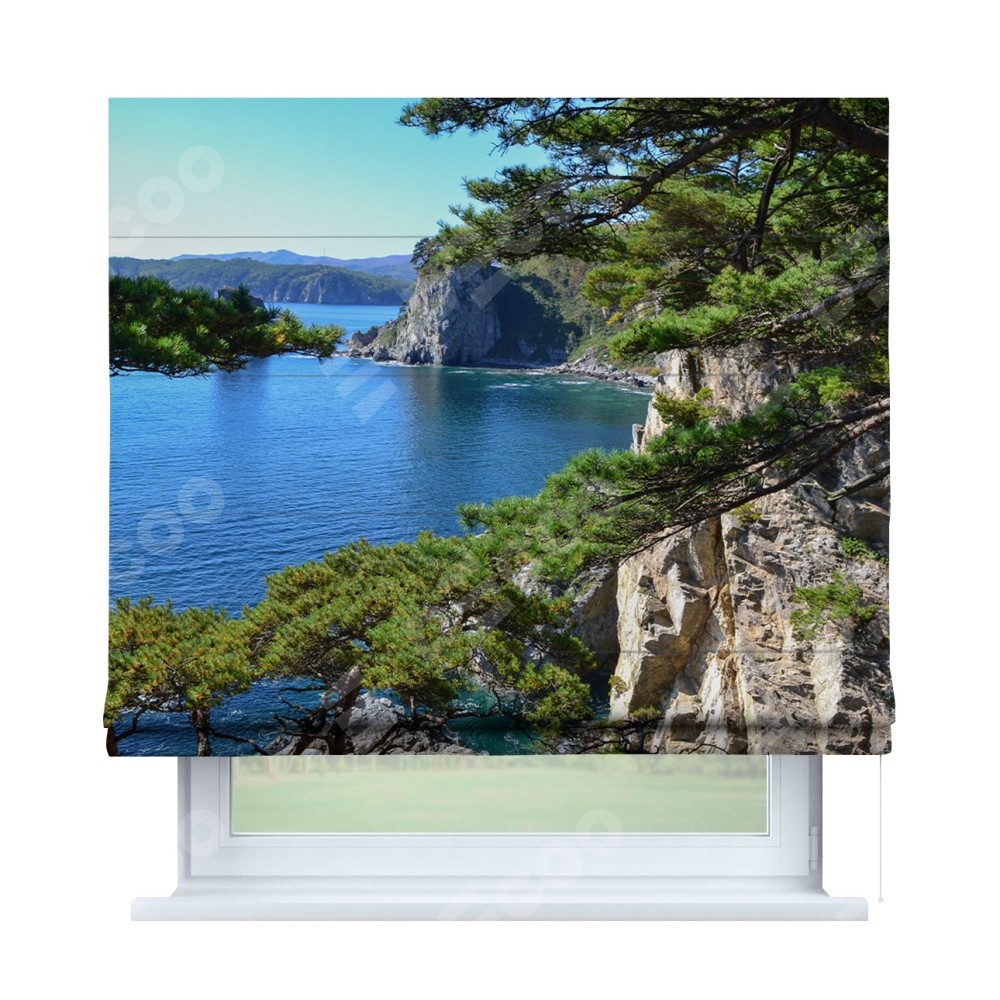 Римская штора «Кортин» для проема «Море и сосны»
